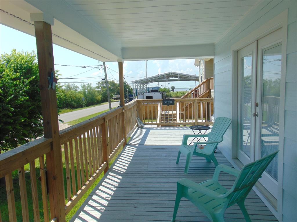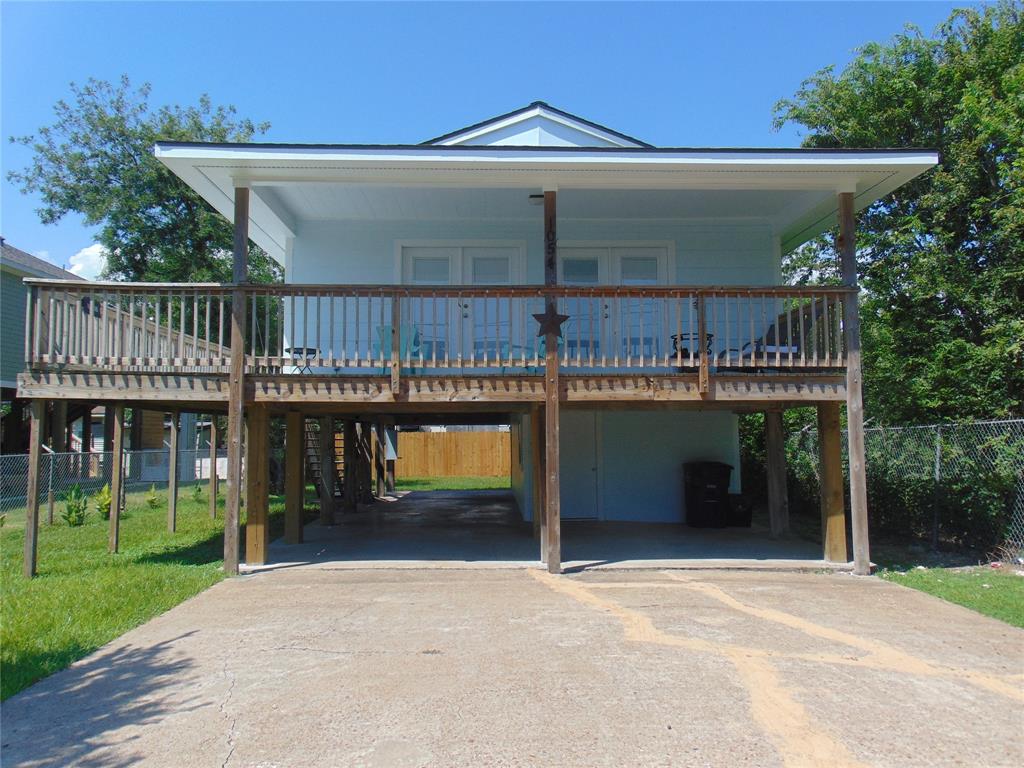 Fabulous bay views from the expansive wrap-around-two sides balcony of this 2 bedroom home in San Leon. Steps away from the picturesque shrimp boats on the canal, the expansive waters of Galveston Bay, and around the corner from the exclusive Edward's Landing subdivision, this serene home has the best of both worlds. Renovated in 2023 - paint, flooring, new AC in and out and ductwork, thermostat, quartz countertops and backsplash, new roof. Did I mention the newly built out area downstairs big enough for another bedroom plus your exercise equipment and other stuff? And the low e windows for energy savings. Unique design with double French doors that open from the dining and living room out to the balcony, where you can relax or party with the sea breezes blowing from the Bay. Ceiling fans in the major rooms, microwave above oven, washer dryer, dishwasher, and refrigerator included. Gilhooley's, Pier 6 and Top Water Grill are close by and so is the shopping in Kemah. Make it yours!