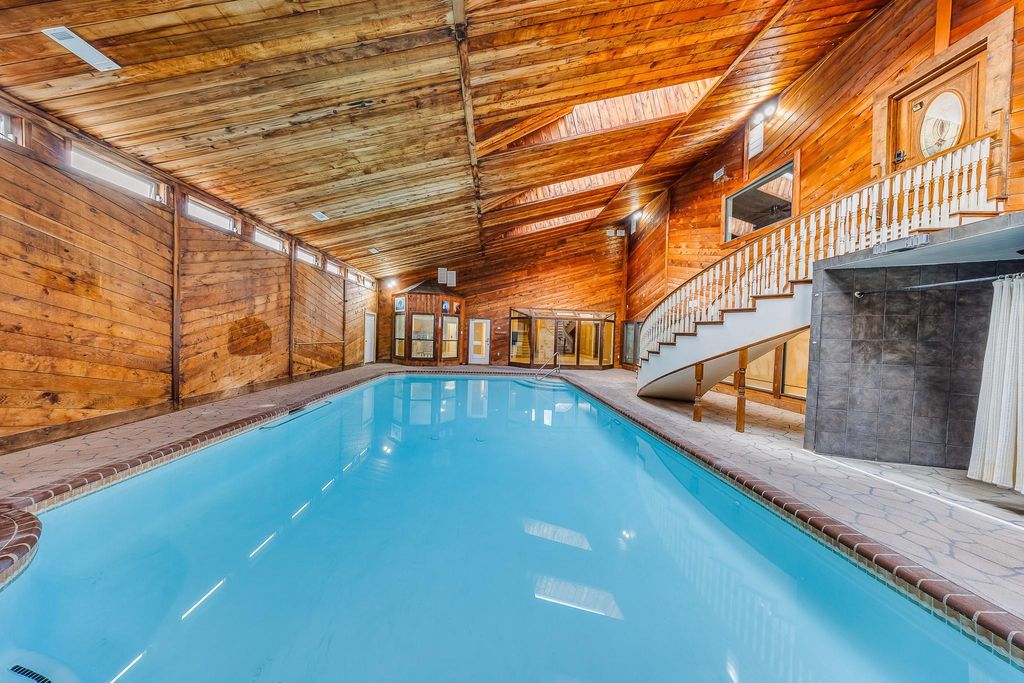 INDOOR POOL renovated 2025! Your Dream home. 4 Bedroom 4 1/2 baths. Freshly painted. Features curved staircase to the pool,dance floor, glass walls offering bright pool views throughout, In addition granite kitchen countertops. Situated on a nearly half-acre double lot, ideal for entertaining and privacy. Approximately 4000 sq ft. (6,000 +- inc. pool) with 3-zone A/C. New gas stove and dishwasher. Refrigerator stays. Next door lot it is also for sale and seller prefers to sell house first before selling the lot. SOLD -AS- IS. Buyer must buy a new Survey if needed.