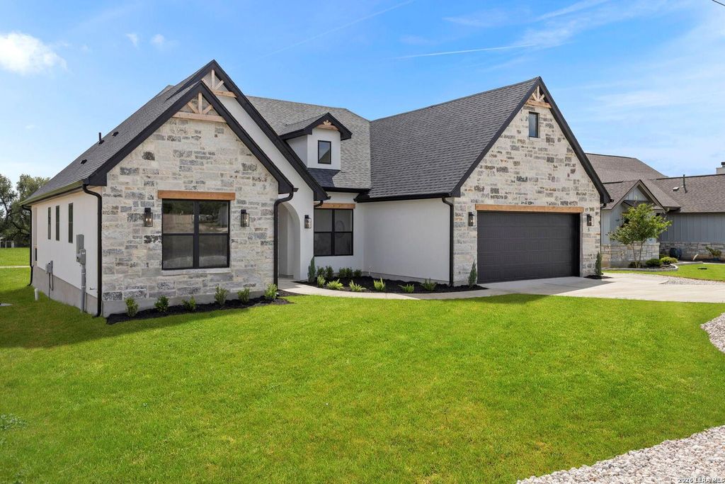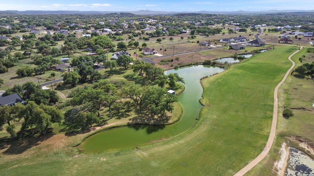 * 1 year rate buydown at no cost with preferred lender *#16 fairway location *Championship golf community * Covered patio * Golf cart garage | Welcome home to this beautifully crafted single-story custom residence located in the desirable Rockin' J Ranch community, offering scenic golf course views and elevated design throughout. Spanning approximately 2,224 square feet, this thoughtfully designed floor plan features 3 bedrooms, 3 full bathrooms, a half bath, and a dedicated office-perfectly blending comfort, functionality, and modern Hill Country style. The office, positioned near the front of the home, provides a quiet and productive workspace. At the heart of the home, the open-concept living area showcases soaring vaulted ceilings, creating a bright and inviting space ideal for both everyday living and entertaining. Large windows frame picturesque golf course views, seamlessly connecting indoor and outdoor living. The kitchen is a true centerpiece, featuring custom cabinetry, st