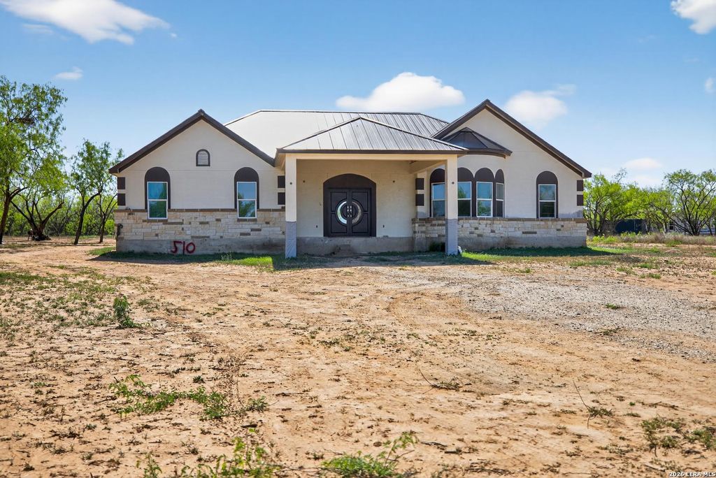 510 HIGH MDW is listed for sale at $ 434,999. The Single-Family property has 4 bedrooms, 3 Full Bathrooms, 1 Half Bathroom, 3503 square feet and was built in 2018. The lot size is 4.846 Acres. ##BR##Unlock the potential of your dream home in beautiful Lytle, Texas! This impressive 4-bedroom, 3.5-bath residence, set on an expansive almost 5-acre corner lot, offers a unique opportunity for you to add your personalized finishing touches and complete the build to your liking. Step inside to discover a thoughtfully designed open-concept layout with high ceilings and custom vaulted ceilings throughout, creating a bright and spacious atmosphere. The chef’s kitchen features a convenient walk-in pantry, perfect for culinary enthusiasts and entertaining guests alike. This home includes a mother-in-law suite equipped with its own bathroom, making it ideal for guests or extended family. Two additional bedrooms share a stylish Jack and Jill bathroom, ensuring comfort and privacy for all. Outdoor living is a highlight, with a huge covered front porch and a generous back patio, perfect for enjoying quiet mornings or hosting gatherings. The custom front and rear entry doors add a charming touch,