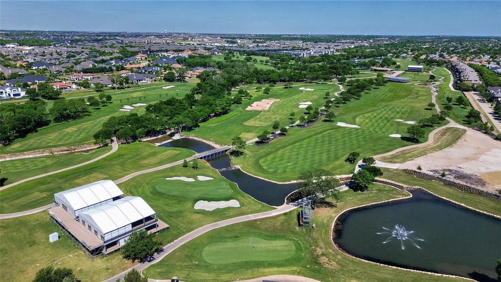 Skip the wait and headaches of new construction—this pristine American Legend home is completely turnkey and protected by a builder warranty through 2029! Situated on a highly desirable, premium lot that is literally steps away from the community pool and clubhouse, this 4-bedroom, 2.5-bathroom home is an absolute showstopper in the elite Frisco ISD. The moment you walk through the door, you are greeted by dramatic vaulted ceilings and a sweeping curved staircase bathed in natural light from custom-placed windows. Gorgeous, high-end wood-look tile anchors the first floor, leading you into a massive open-concept living space. The chef-inspired kitchen is the heart of the home, featuring an oversized gathering island, top-tier granite countertops, dual sinks, stainless steel appliances, and incredible storage space. Tucked away on the main floor is the primary suite, designed to be your private retreat. The spa-like en-suite bath boasts a deep soaking tub, a separate walk-in shower, and dual vanities. Head upstairs to discover the ultimate family zone: a highly versatile bonus room perfect for movies or playtime, flanked by two spacious bedrooms and a full bath. Outside, your personal oasis awaits with an expansive backyard and extended patio ready for entertaining. But the perks of this unbeatable location don't stop at your property line. Because you are just steps from the clubhouse, the neighborhood's luxury amenities—including an adjacent 18-hole golf course, fitness center, soccer field, and volleyball courts—feel like an extension of your own backyard.