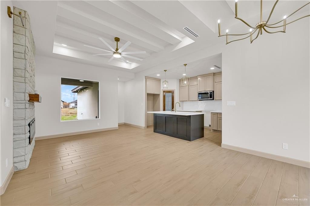 Brand-new construction in Edinburg offering a refined blend of comfort and style. This thoughtfully designed 3-bedroom, 2-bath home features an open-concept layout that feels both spacious and functional. A luxury feel is found throughout the home, with elegant gold accents and a striking stone fireplace accent wall that anchors the living space. Modern farmhouse influences add warmth and charm, creating a calm, inviting atmosphere. Clean lines, soft finishes, and a well-balanced design make this home ideal for both everyday living and quiet enjoyment. A tasteful, move-in-ready retreat with understated character.