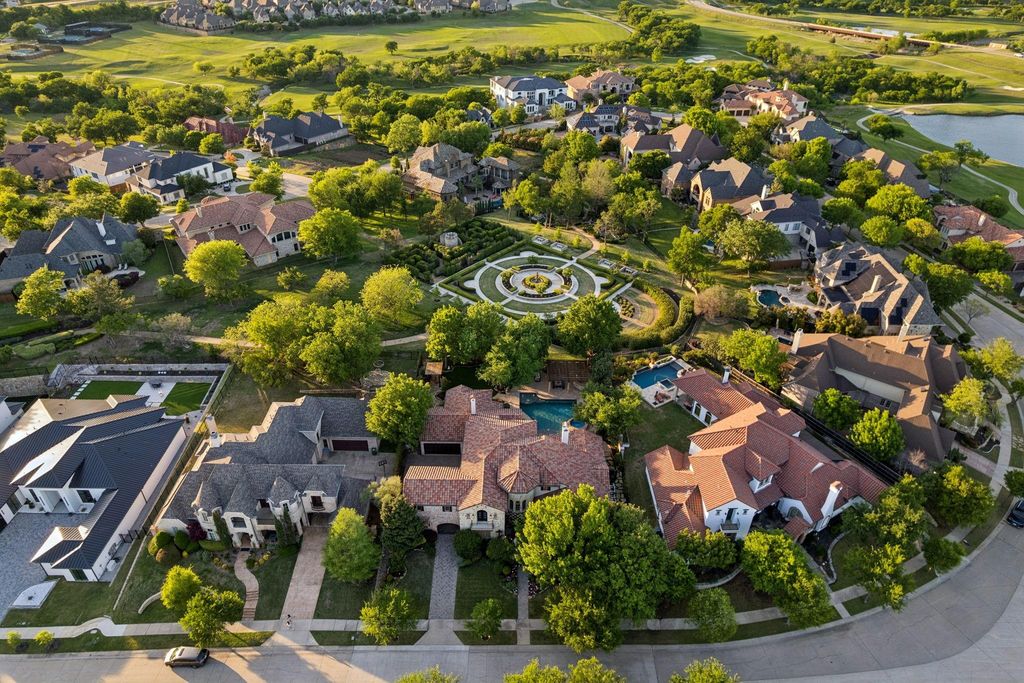 Experience the most stunning Spanish Revival estate in North Dallas. Situated within the exclusive, guard-gated community of Enchanted Hill. This abode sits on one of the finest lots, featuring a dream backyard & breathtaking view of an English garden, surrounded by mature trees & arboretum-like landscaping. Magnificent courtyard. Inside, the decor is bold, classy & beautiful, with an interesting floor plan that captivates at every turn. You'll be mesmerized by the lavish chandeliers, opulent wall coverings, designer paint colors & exquisite artwork throughout. Six-bedroom suites, 2 half baths, office, game, media, pool, spa & 3 garages. Impressive foyer with sweeping staircase, elegant dining room, exceptional family room with an FTC stone fireplace & panoramic view of the pool. The family room flows gracefully to the kitchen, breakfast area & an additional lounging space with another fireplace. Chef’s kitchen features Wolf-Subzero appliances, handmade gold leaf backsplashes, island, breakfast bar, multiple beverage & wine coolers, a bar & a wine cellar. Upstairs, 3-bedroom suites, a game room & an impressive home theater. The exquisite master suite serves as a luxurious retreat, complete with a large sitting area, a spa-like bathroom & a fabulous closet. Each bedroom has a luxurious bathroom with marble countertops, decorative wallpapers & large showers. There's a gym, large laundry room, mudroom, 2 fireplaces, 2 staircases, Iron French doors & a mosquito control system. The magazine-worthy backyard is a highlight of this home, featuring an incredible pool, spa, expansive paver decking, multi lounges, a large pergola with a built-in grill & an al fresco dining setting, firepit area, sunset deck, green turf & arbor swing. Exceptional architectural lighting, lush landscaping, mature trees & sculptures, this estate offers abundant spaces for ultimate privacy or hosting luxurious events. Enjoy a chic, timeless, and sophisticated lifestyle unmatched in the area