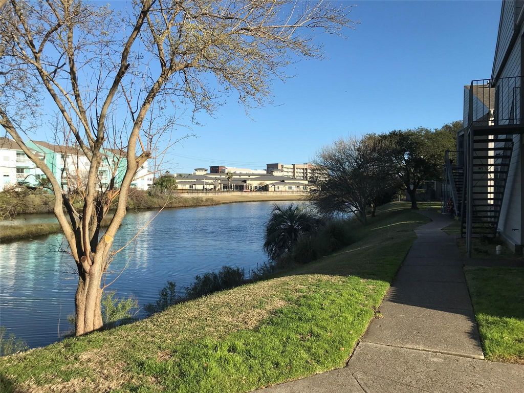 Welcome to this beautifully updated two-bedroom, one-bath condo featuring like-new engineered laminate flooring throughout. The fully remodeled bathroom offers a sleek standing shower, double vanity sinks, and modern mirrors for a contemporary touch. Recent upgrades provide peace of mind, including a new A/C and heating system (2022), a water heater replaced in 2020, and a stacked washer and dryer installed in 2018. Parking lot:#160. Enjoy resort-style outdoor amenities with access to a community pool and a private natural lake within the complex—perfect for kayaking and fishing. Ideally located within walking distance to the Galveston public beach along Seawall Blvd, and just minutes from shopping, dining, piers, UTMB, and local hospitals, this condo offers both comfort and convenience.