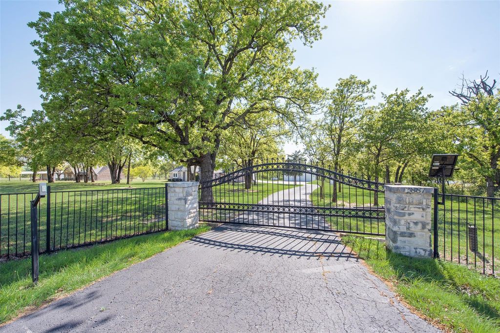Tucked behind a gated entrance and set far off the road on a long private drive, this beautifully reimagined home offers a rare sense of privacy, space, and quiet that defines Texas country living. Set on 2 acres in the rolling countryside of Weatherford, the property invites a slower pace—where mornings begin with wide-open views and evenings are spent under big Texas skies, gathered around the fire pit or relaxing on the extended covered patio overlooking your pond. Inside, the home has been thoughtfully remodeled with a modern, elevated design. Vaulted ceilings and natural light create an open, welcoming feel, while the kitchen anchors the space with a farmhouse sink, granite countertops, soft-close cabinetry, and a walk-in pantry designed for both function and style. The primary suite is a true retreat, featuring a spa-inspired bath with an oversized walk-in shower, a generous walk-in closet, and double doors that open directly outdoors—blending indoor comfort with the landscape. A unique and functional layout includes a third bedroom with its own ensuite bath—ideal for guests or multi-generational living—while a convenient half bath sits just across from the second bedroom. Beyond the home, the property continues to impress. A fully insulated 30x30 shop is equipped with electric, 220 wiring, welding plugs, and a 50-amp RV hookup, with additional RV parking just behind the shop. Whether for work, storage, or recreation, the possibilities are extensive. Practical features support the lifestyle, including a tankless water heater for endless hot water, a private well, and a 500-gallon propane tank that fuels the furnace, stove, and fireplace. With the land fully fenced, a chicken coop in place, and no HOA restrictions, this property offers the freedom to live, work, and unwind on your own terms while enjoying the peace and beauty of the countryside.