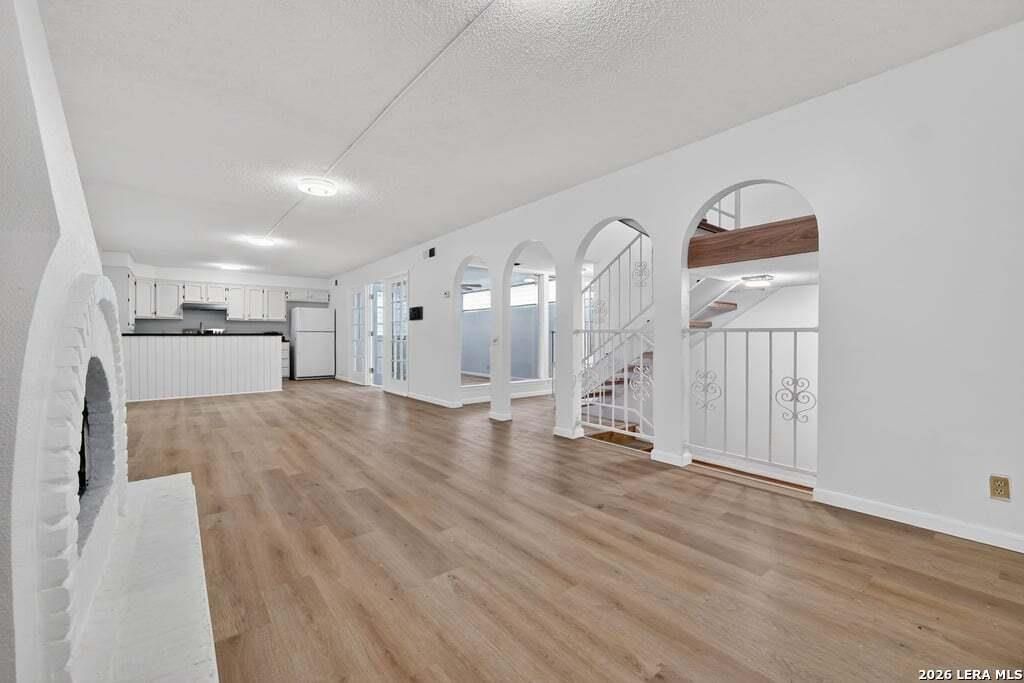 Located in the guard-gated community of Mission Trace, this beautifully updated home offers comfort, privacy, and a prime central San Antonio location. Surrounded by mature trees and scenic walking areas, the setting provides a quiet, cabin-like feel with natural surroundings. The home features 3 bedrooms and 2 full bathrooms, with recent updates including new flooring and fresh white interior paint, creating a bright and timeless look. Mission Trace offers controlled access with on-site security, along with a well-established, peaceful environment just minutes from shopping, dining, and major routes.