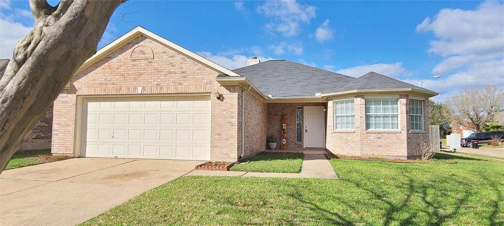 Rare single story home in Katy, Texas with 3 bedrooms and 3 full baths. Corner lot location, full brick 4 sides, roof from 2018,Central heater was replaced in 2024, fresh interior paint. Fans in all bed rooms. Family room features a fireplace and tile flooring. Charming kitchen with ample cabinets and spacious walk-in pantry. Bright breakfast area with bay window. Primary bath has separate standing shower and Jacuzzi bath .Tile flooring in wet areas, laminate in all bedrooms. Move-in ready, don't miss out!