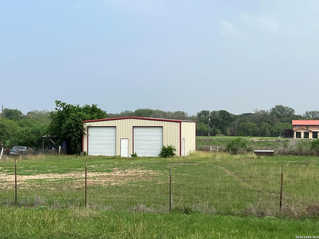 2-bay 50x50 steel-framed, metal workshop on concrete slab on a 1/2 acre lot! Fenced on all 4 sides. GVEC electric meter in place. Shop is plumbed for bathroom. No city taxes. Paved county road. Less than 1/2 mile to I-10 and Hwy 90. This is an unrestricted area. Perfect for a Manufactured Home and/or commercial business. This would be perfect for wrapping into an FHA or VA Manufactured Home Loan, where a Buyer can also run a small business using the shop. Close to FM 725, Love's Truck Stop and Granzin's Meat Market, Seguin, TX. This will be one exit from Seguin Towne Center.