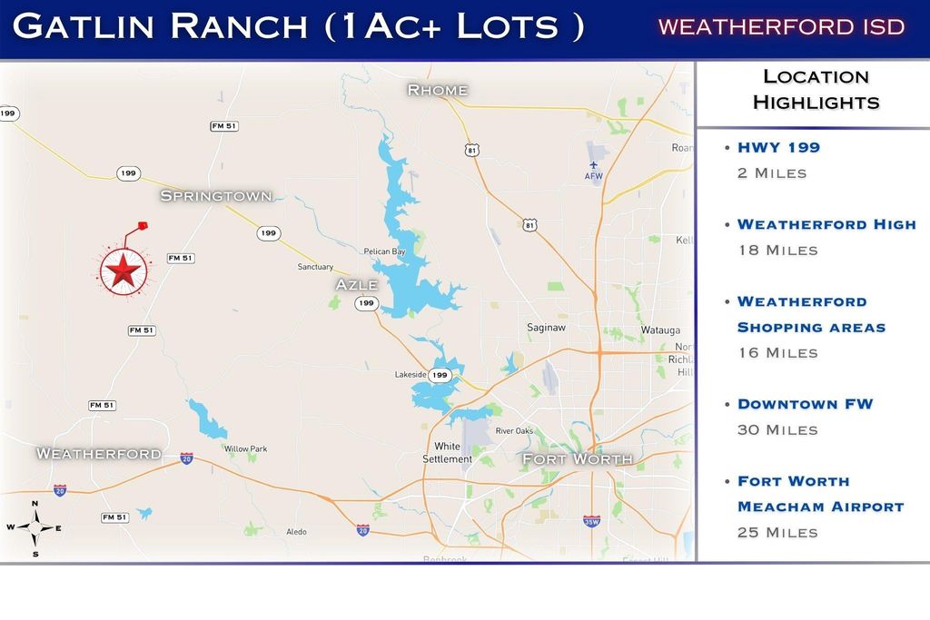 Gatlin Ranch offers a rare opportunity to own acreage homesites in a quiet, established community within the highly regarded Weatherford Independent School District. With only six lots remaining, ranging from 1.0 to 1.9 acres, this neighborhood provides the perfect blend of space, privacy, and convenience for homeowners looking to build their ideal home.