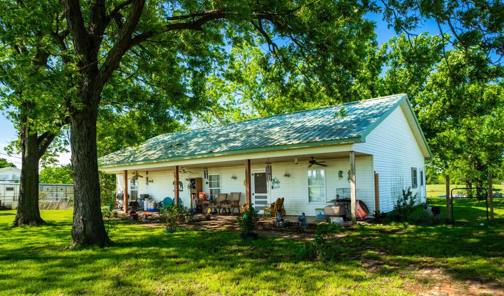 Escape to your own private slice of country paradise on 29.71 acres! This charming property blends rustic appeal with modern durability, featuring a main home built with a strong metal frame and built-in surge protection, plus a welcoming covered front porch perfect for taking in wide-open views. Step inside to discover 3 bedrooms, 2 bathrooms, a comfortable living space, and a spacious kitchen with a combined dining area—ideal for gathering. The overall layout offers a warm, cozy, country-inspired feel that instantly feels like home. The possibilities don’t stop there—this property also includes a 936 sq. ft. secondary “hobby” house with its own front porch and separate septic system (not currently connected), ready for your vision—guest house, studio, office, or income-producing space. Designed for both work and play, you’ll love the impressive outbuildings: a 24' x 40' greenhouse with electricity and water for year-round gardening, a 30' x 50' metal shop with power for projects or storage, and a 40' x 60' horse barn with five stalls, 2 ponds, and a variety of 3 kinds of pecan trees with 11 total pecan trees surrounding the home. There’s also a large RV carport and a dedicated chicken coop area to complete your country lifestyle. Room to roam, space to create, and endless potential—properties like this don’t come along often. Don’t let this one get away!