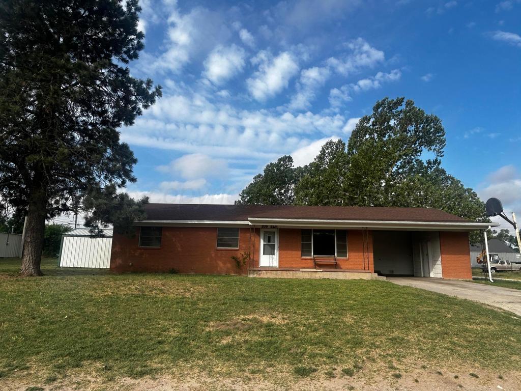 Spacious 3-bedroom, 2-bath brick home in Higgins, Texas, located within highly sought-after Canadian ISD, offering small-town charm with plenty of room to spread out. Situated on a large lot with mature trees, expansive fenced backyard, storage building, and a 3-sided 2-car carport with additional storage. Inside features two living areas, generous bedrooms, built-in shelving, abundant storage, and timeless character throughout. Functional kitchen offers ample cabinetry and workspace, while the versatile floorplan provides flexibility for entertaining, family living, or a home office. Covered front porch adds welcoming curb appeal. A wonderful opportunity for families, first-time buyers, or anyone seeking peaceful living with space, comfort, and potential.