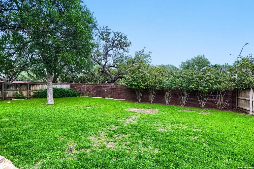 Nestled within the sought-after gated community of Oakwood in San Antonio, this beautifully maintained single-story home offers 2,315 square feet of thoughtfully designed living space with 3 bedrooms and 21/2 bathrooms. From the moment you arrive, the beautiful front door and curb appeal set the tone for what awaits inside. Step into a home where comfort and style meet effortlessly. The updated kitchen features gleaming quartz countertops, a breakfast bar perfect for casual dining, a sunny breakfast area, and cabinets with pullout storage drawers that make organization a breeze. Whether you're hosting a dinner party or enjoying a quiet morning coffee, this kitchen delivers. Throughout the home, noise-reduction windows and plantation shutters create a peaceful, private retreat from the outside world - a rare and welcome luxury. The replaced HVAC system ensures year-round comfort and efficiency, while a whole-home water softener adds an extra layer of thoughtful living. Retreat to the