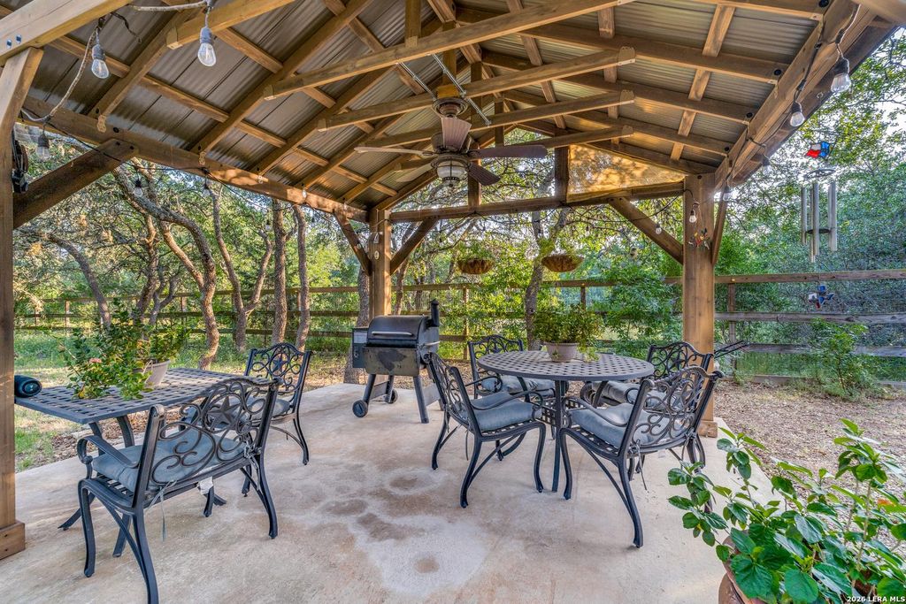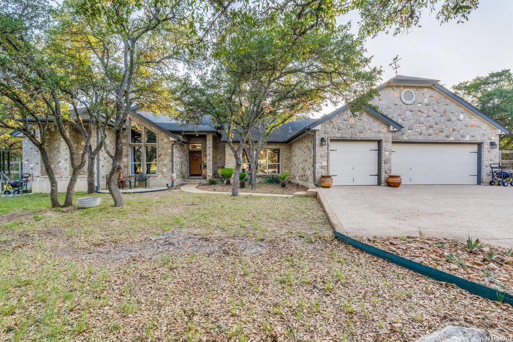 Welcome to your Hill Country haven in sought after Fair Oaks Ranch! Nestled on 1.43 oak studded acres in beautiful Kendall County and zoned to highly desirable Boerne ISD, this spacious 3,636 sq. ft. single story home offers warmth, character, and room to live the way you've always imagined. Bring your RV, boat, or toys - there's plenty of space! From the moment you step inside, you'll feel instantly at home. The expansive living room impresses with stunning wood coffered ceilings and a double sided rock fireplace that flows seamlessly into a generous game room complete with an oversized wet bar-perfect for gatherings and entertaining. The well appointed kitchen features granite countertops, a central island, tile backsplash, double ovens, and a sunny eat-in area. Hosting is easy with a bright, inviting formal dining room just steps away. Your private primary retreat is a true getaway, offering a spacious bedroom with a comfortable sitting area, a bath with jetted tub, sepa