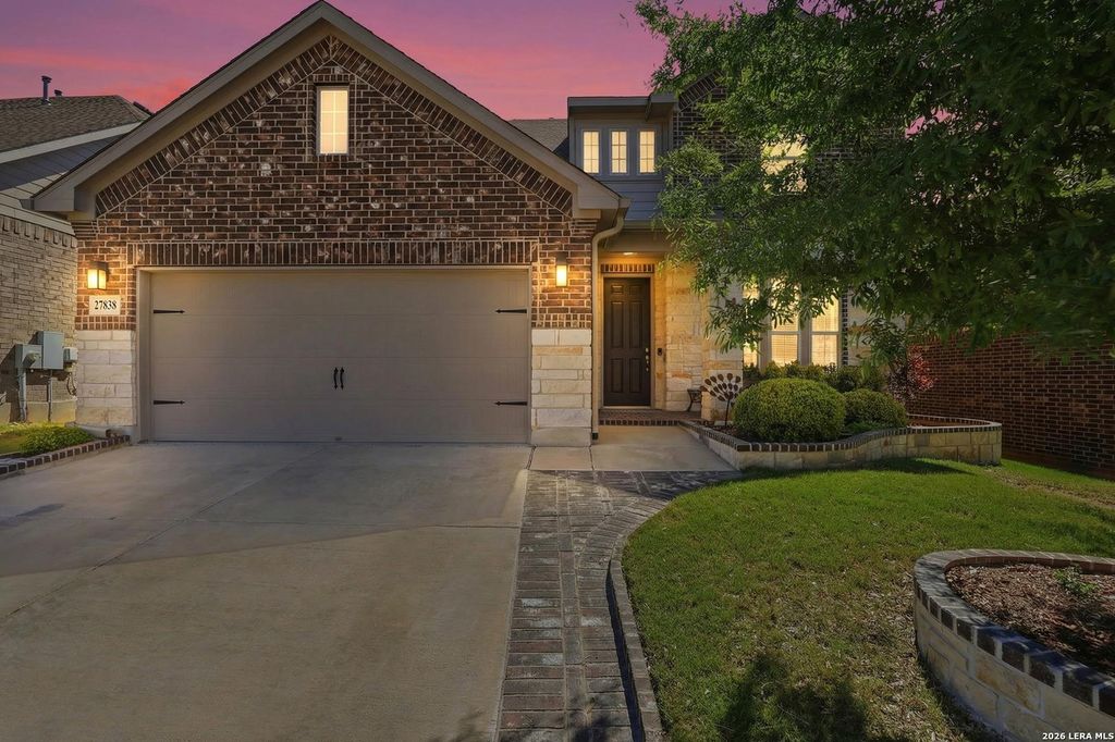 27838 Spanish Peaks is listed for sale at $ 519,000. The Single-Family property has 4 bedrooms, 2 Full Bathrooms, 1 Half Bathroom, 2623 square feet and was built in 2020. The lot size is 0 Square feet. ##BR##**OPEN HOUSE SAT and SUN 4/11 and 4/12 12PM-3PM** Style, space, and Hill Country living in one of Boerne’s most sought-after communities. Welcome to 27838 Spanish Peaks, a beautifully upgraded 2020-built Ashton Woods home in the established Cielo Ranch neighborhood of Boerne. From the moment you arrive, the brick and stone exterior and manicured landscaping signal that this one was taken care of differently than the rest. Step inside to a bright, open-concept main level with upgraded lighting throughout and smart-controlled lighting that lets you set the mood in every room. The kitchen shines with upgraded fixtures and finishes, and the fireplace anchors a living space that is equal parts comfortable and impressive. The primary suite is on the main level, your private retreat at the end of every day. Upstairs, three additional bedrooms surround a spacious loft fitted with privacy doors that close off the space entirely when you need quiet for work, school, or a guest stay. Upgraded bath