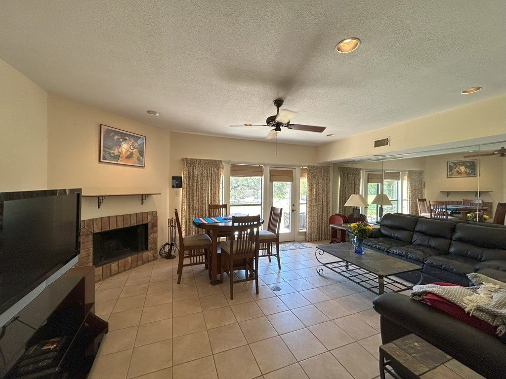 Beautifully maintained townhouse overlooking the 18th tee box at Riverhill Country Club, offering serene greenspace, golf course and Hill Country views. This 3 bedroom, 3 bath residence features approximately 1,400 sq. ft. with spacious, oversized bedrooms, each with its own private ensuite bath for comfort and privacy. The upstairs primary suite features a cozy fireplace and access to one of two private balconies-perfect for morning coffee or relaxing Hill Country evenings. A downstairs bedroom provides an additional primary suite option for guests or convenient single-level living. Enjoy outdoor living with two upstairs balconies that capture the beautiful Riverhill setting. Selling fully furnished, making this an exceptional opportunity for a primary home, lock-and-leave getaway, or investment. Just a few of the recent improvements include new stucco and pergola work completed in 2025 and a new RO water filtration system installed in 2025. Two designated parking spaces included. Offered below KCAD appraised value. This townhome is move-in ready and ready for your personal touches. Come and make this your weekend getaway, vacation home, or full-time residence.