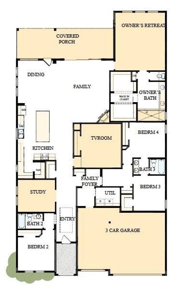 Sunny gathering areas and serene bedrooms contribute to the everyday delight of The Ortega floor plan by David Weekley Homes. Your impressive Owner's Retreat offers a fantastic place to rest and refresh with a contemporary en suite bathroom and walk-in closet.The study presents a sleek opportunity to create a home office, gym, or lounge. Growing and unique styles will find a great place to make their own in the Jack-and-Jill bedrooms. Expansive prep and storage allow the exquisite kitchen to present a picture-perfect setting for birthday cakes, family breakfasts, and holiday feasts. The open-concept family, dining, and sitting areas easily adapt to your special occasion and everyday lifestyle needs. Build your future with the peace of mind that Our Industry-leading Warranty brings to this new home in The Grand Prairie of Hockley, Texas.