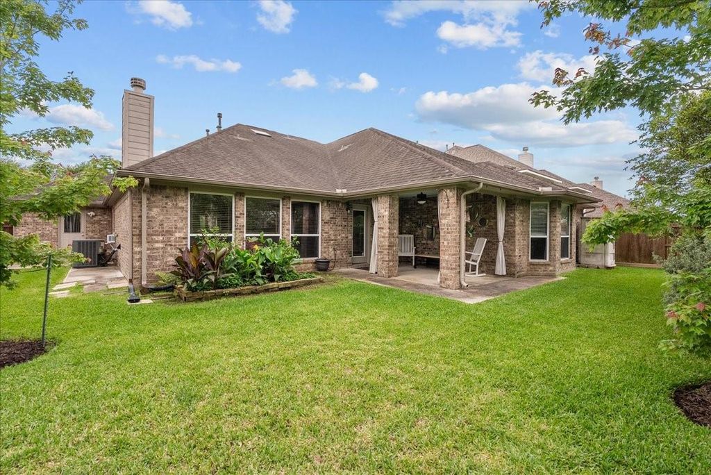 OPEN HOUSE-SAT 4/18 & SUN 4/19, 1-3PM. Excellent 1-Story home with amazing spaces along w/ 4-CAR GARAGE w/220 VAC outlet, utility sink, windows & epoxy floor. This home is 4-bed 3-bath with additional game room/bonus living space. 18" neutral matte ceramic tile throughout (no carpet). Granite countertops in kitchen, SS appliances w/Fagor gas cooktop, soft-close doors/drawers, large skylight & open to dining/living room. Windows line the dining & living room looking out to backyard. Split plan with large master includes sitting area. En suite bath w/jacuzzi tub, separate shower & double sinks; walk-in closet. 3 additional bedrooms and 2 full baths. Very energy efficient home. Beautifully landscaped yard with full sprinkler system, multiple trees, covered back patio & 2nd patio off garage. No back neighbors. Cul-de-sac street. Very low tax rate (1.65%). Near UTMB & NASA. Easy access to major highways. Highly-rated CCISD.