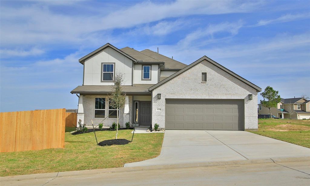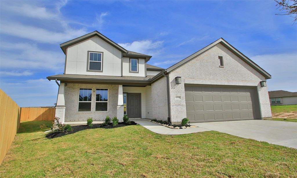 Enjoy relaxed living at Mostyn Springs—a charming community nestled in the countryside of Magnolia, TX! With close proximity to top-rated schools, shopping, and dining, this peaceful neighborhood offers the perfect blend of comfort and convenience. Step into this two-story Southfork plan with 4 beds, 2.5 baths, a flex space, & an upstairs game room. The open-concept design is built for entertaining, with the kitchen overlooking the dining area and family room. The kitchen features stainless steel appliances, 42" white cabinetry, and stunning omega stone countertops. Enjoy durable laminate flooring throughout the main areas, with tile in the wet spaces. The primary suite is your personal retreat, complete with a walk-in shower, large walk-in closet, and dual sinks. Outside, relax in your private backyard with full sod and a sprinkler system under the covered patio. This home is under construction and will be ready April 2026!