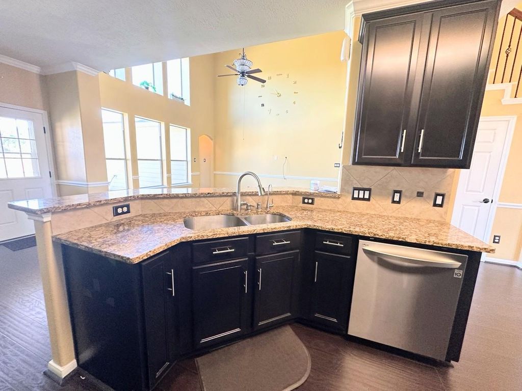 Stunning 3 bed, 3.5 bath 2-story home boasts a partially furnished interior, complete with a fully furnished theater room with Game room and pool table. Enjoy the convenience of a First-floor Master bedroom, granite counters, and stainless steel appliances in the Kitchen. The property also features a Fenced Backyard, lots of natural light, and a 2-car attached garage. Located within walking distance of a Community park and close to major freeways, shopping, and restaurants. This home is a must-see Gem! Refrigerator, Washer, and Dryer included. Can be leased fully furnished. *NOTE: Dark Colored Walls can be Repainted a Neutral Color by Owner (if desired) after Application is Approved*