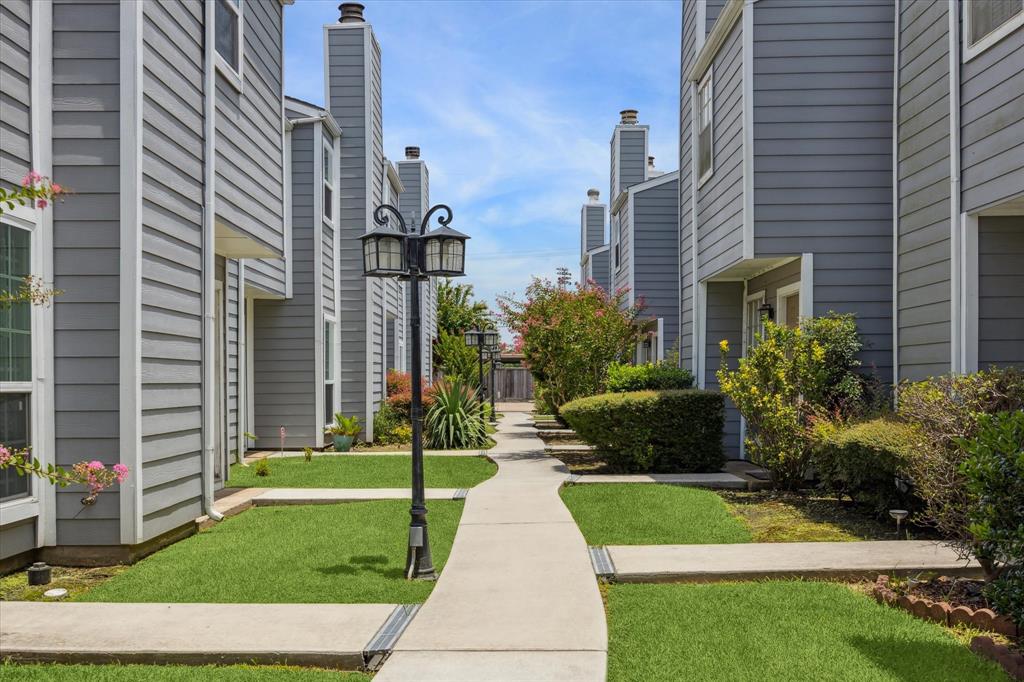 Freshly painted throughout. Exceptional location meets refined living. Experience stylish low maintenance first floor living in this beautifully renovated townhome. Gated community just minutes from the galleria, short drive to downtown and med center. Exceptional freeway access. This residence offers the perfect blend of convenience and sophistication. The thoughtfully updated interior features a spacious living area with a statement woodburning fireplace, formal dining, a chic dry bar and modern kitchen appointed with granite countertops and stainless appliances. Both bedrooms boast a wall of closet space, well thought out with cubbies/shelves and hanging space. This desirable unit offers added privacy, natural light and timeless appeal with outdoor entertaining space and upper balcony. The streets surrounding this community were redone with drainage and sidewalks.