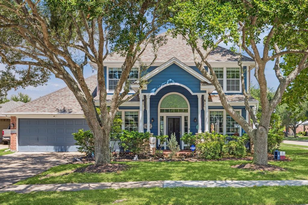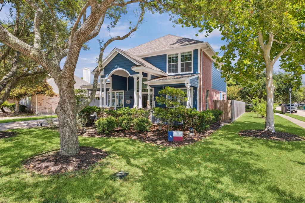 This charming and immaculate home is superbly located on a corner in a cul-de-sac. The recently painted exterior and large front porch create stunning curb appeal. Upgrades throughout showcase pride of ownership, including a unique floor plan with plenty of space, an office with French doors, a primary bedroom suite downstairs, and a huge game room upstairs. The dream kitchen features flush cabinets, elegant granite counters, lots of windows and a cozy breakfast window nook. Remodeled bathrooms, a generous back patio with pergola, and proximity to Seabrook trails and wildlife add to the appeal. Experience charm, peace, and nature in this small fishing town near Galveston Bay, just minutes from NASA.