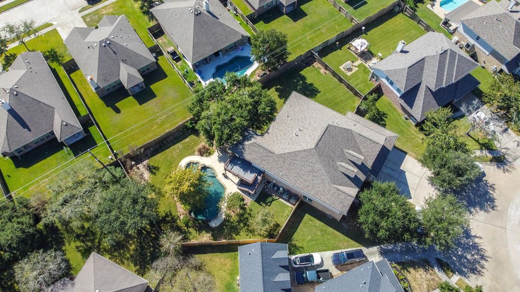 Welcome to 1602 Old Orchard Lane, a traditional residence in the highly sought-after Mystic Village at Lake Mija community. This spacious 4,541 sq. ft. home features 5/6 bedrooms, 3.5 baths,and sits on a generous 14,985 sq. ft. cul-de-sac lot.Step inside to soaring high ceilings and an expansive, multi-zoned floor plan that includes a Formal Living, Office, and Dining area with beautiful hardwood floors,a large Den (20x18),an upstairs Game Room (29x13), an Extra Room (25X12), and a dedicated Office—also finished with hardwood flooring. The luxurious downstairs Primary Bedroom (17x17) offers a spa-like bath with a Jetted Tub and separate shower.The home is equipped with a new A/C unit installed just 1 year ago and a well-maintained roof that’s only 8 years old.Out back, enjoy a private heated pool,a full outdoor kitchen, and a refreshing balcony to soak in the Seabrook air. Zoned to the acclaimed CCISD, this home blends classic style, modern convenience, and resort-like coastal liv