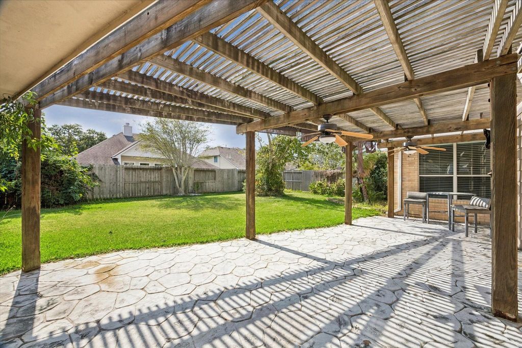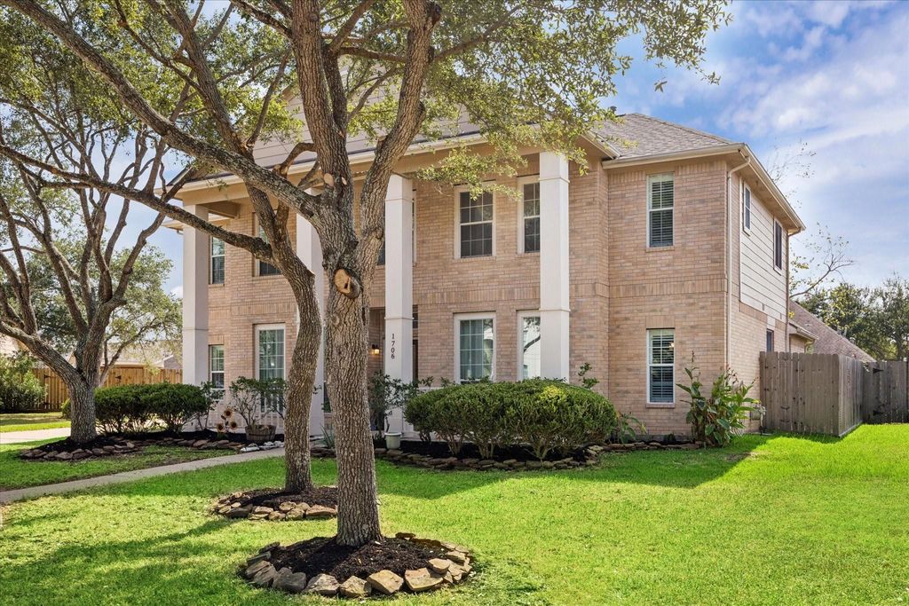 Located in a quiet cul de sac near the lake, this stunning home features a 3-car garage, 4 bedrooms, 2.5 baths, and a game room. The remodeled kitchen and bathrooms are a standout, along with grand two-story ceilings in the family room. Enjoy formal dining and living areas, a large utility room, and a spacious kitchen with plenty of cabinets and a breakfast bar. With a 2024 roof, fresh paint, and carpet, this home also boasts a covered front porch and back patio. Situated in a sought-after lake community with walking trails, fishing pier, and close proximity to NASA, Boeing, and the Kemah boardwalk. Live the coastal small-town dream with parks, a Wildlife refuge, and Galveston Bay breezes. Never flooded per seller.