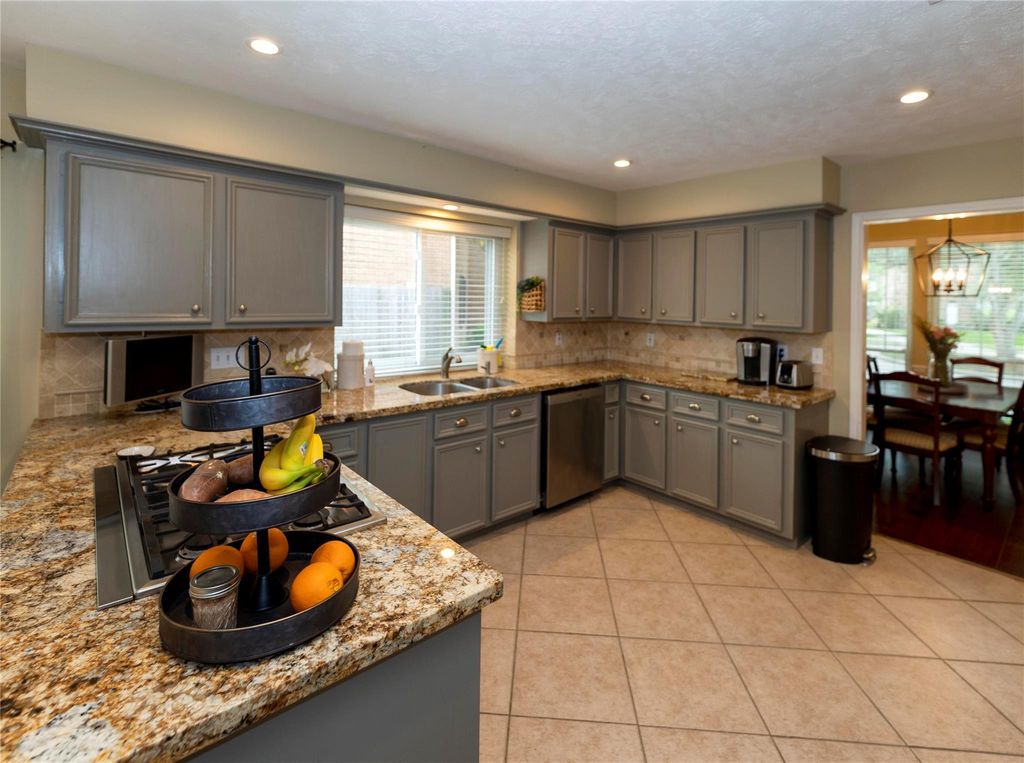 This stunning home in the South Shore Harbour golf course community boasts wood flooring, a cozy fireplace, and a beautiful granite kitchen countertop. With 3 bedrooms and 2 updated bathrooms, this property features a 5-burner gas cooktop, pavers in the backyard, recent roof. and interior paint. AC & Heat has been updated. Enjoy the privacy of a gated entrance, double pane windows, and a three-car garage with hardiboard siding. The interior paint in a modern grey color adds a touch of elegance. Don't miss out on this must-see home!