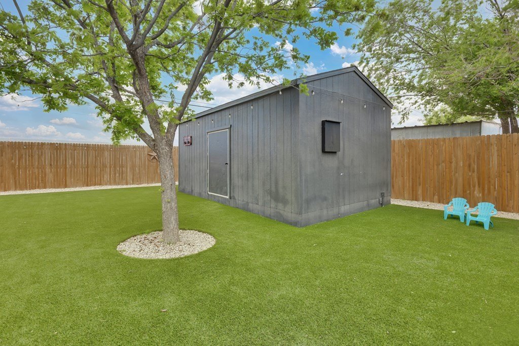 Beautifully remodeled home with stucco exterior and hardwood floors throughout. Updated kitchen and baths, grand pantry, and modern lighting. Primary suite features a walk-in closet and spa-like bath with built-in speakers. Enclosed garage offers flexibility for a bonus room or can be converted back. Enjoy a private backyard with new fence, turf, patio, and pergola (conveys). Storage building with electricity included.