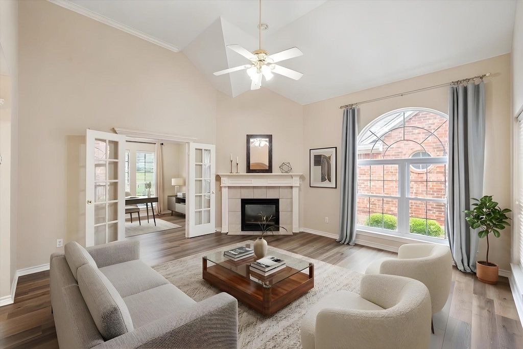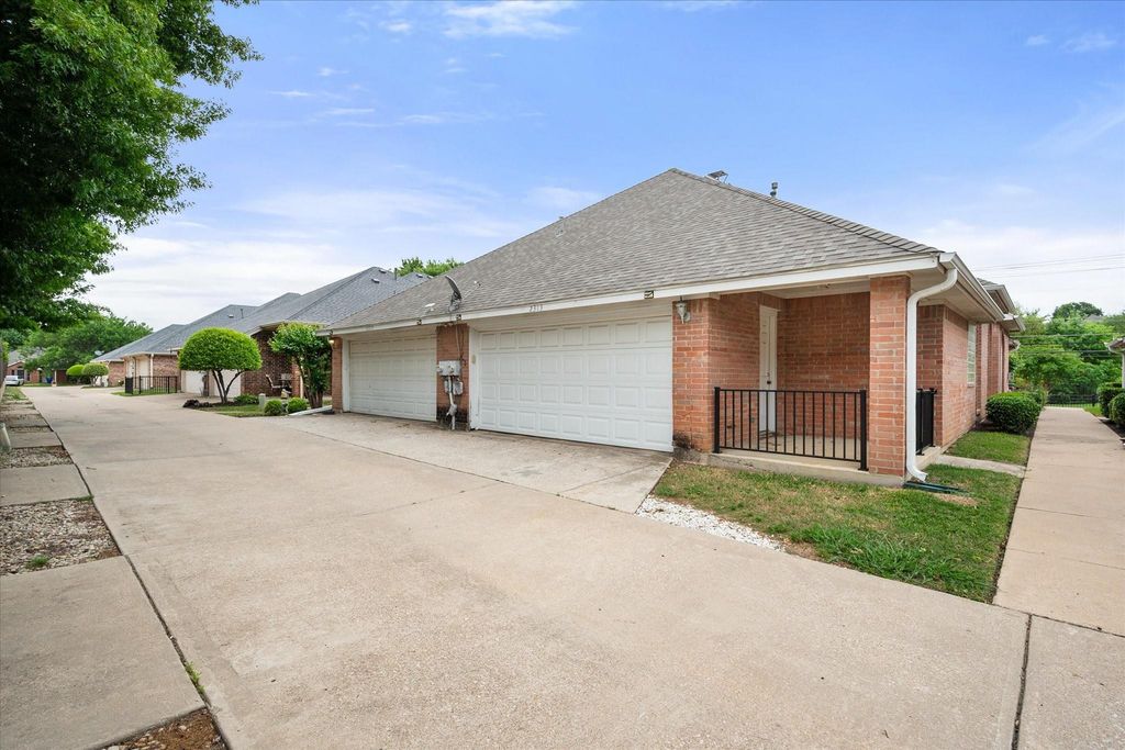Fresh paint, new luxury vinyl flooring throughout, and a new roof make this townhouse-style home move-in ready. With 3 bedrooms and 2 full baths, the layout offers flexibility, including one bedroom with French doors that works beautifully as a home office. You will also find a full-size formal dining room, large bedrooms, a small side porch, and rear-entry alley access to the 2-car garage. Nestled in a small, quiet community where homes do not come up for sale often, this property is a rare find in the highly sought-after Mansfield High School area.