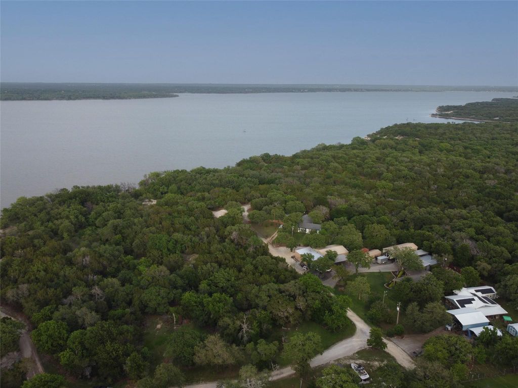 Nothing to fix, nothing to update. Quartz countertops, LVP flooring, custom kitchen island, tons of cabinet storage, every appliance stays, R60 insulation in the attic, new windows, new composition roof, and a brand new central AC. This 2 bedroom, 1 bath lake house has been fully remodeled and move in ready. Includes an office that also serves as a laundry room. The front of the property borders CORP land making a 2 minute walk to lake, which means no neighbors on that side. New gravel driveway runs the full length from street to street. Out back, there's a new deck and a chain link fence with plenty of yard for the dogs to run. The lot is treed with mature manicured oaks and includes a Connex container for storage. Furnishings can be included. This is a natural fit for an Airbnb, a retirement spot, or a first home. Everything's already been done, just show up and enjoy.