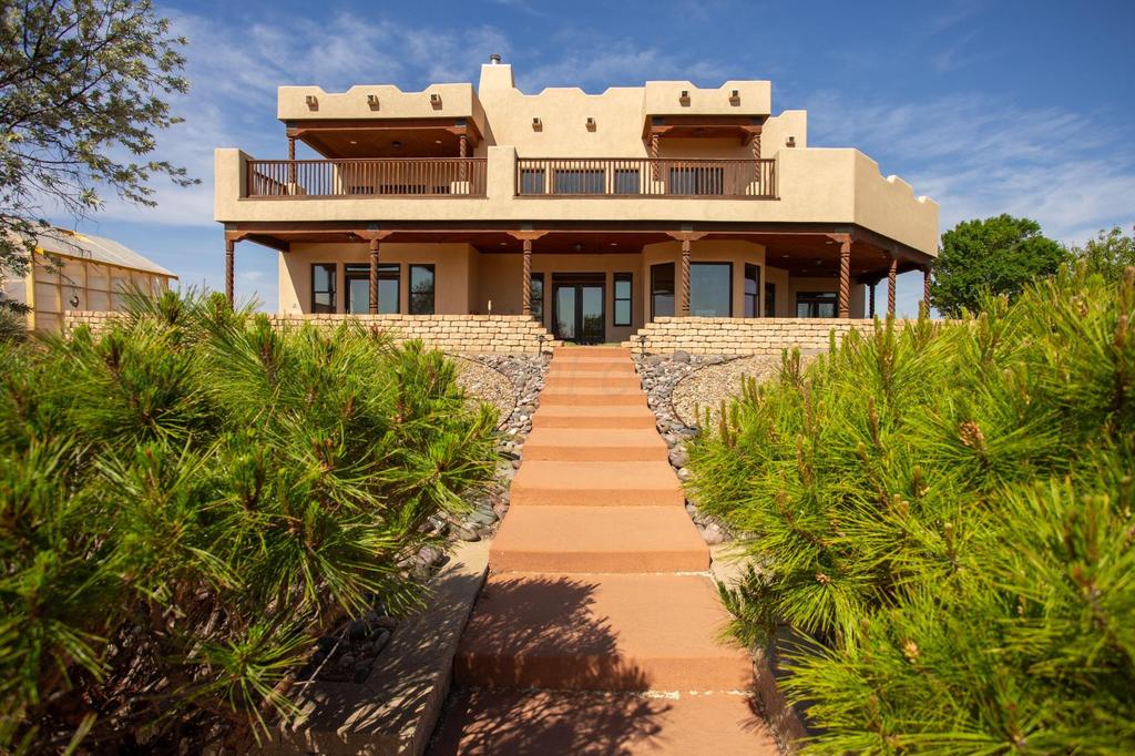 Perched to capture truly breathtaking panoramic views, this Spanish-style custom home is a showcase of design! The home boasts solid log beamed ceilings and walls of windows that flood the home with natural light. The thoughtfully designed layout offers a spacious chef''s kitchen, 4 generous bedrooms, 5 bathrooms, a dedicated office or 5th bedroom and 3 distinct living areas. Step outside to experience resort-style living with a wrap-around patio and expansive balconies that overlook a sparkling heated saltwater pool, creating the ultimate setting for gatherings or quiet evenings under the wide-open sky. Situated on 10.26 acres of gently rolling hills, the property features natural landscaping that enhances its serene beauty, while unforgettable sunrises and sunsets paint the horizon daily.