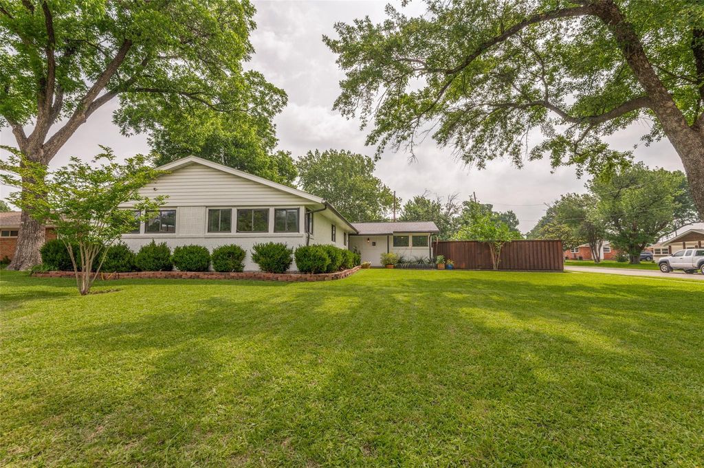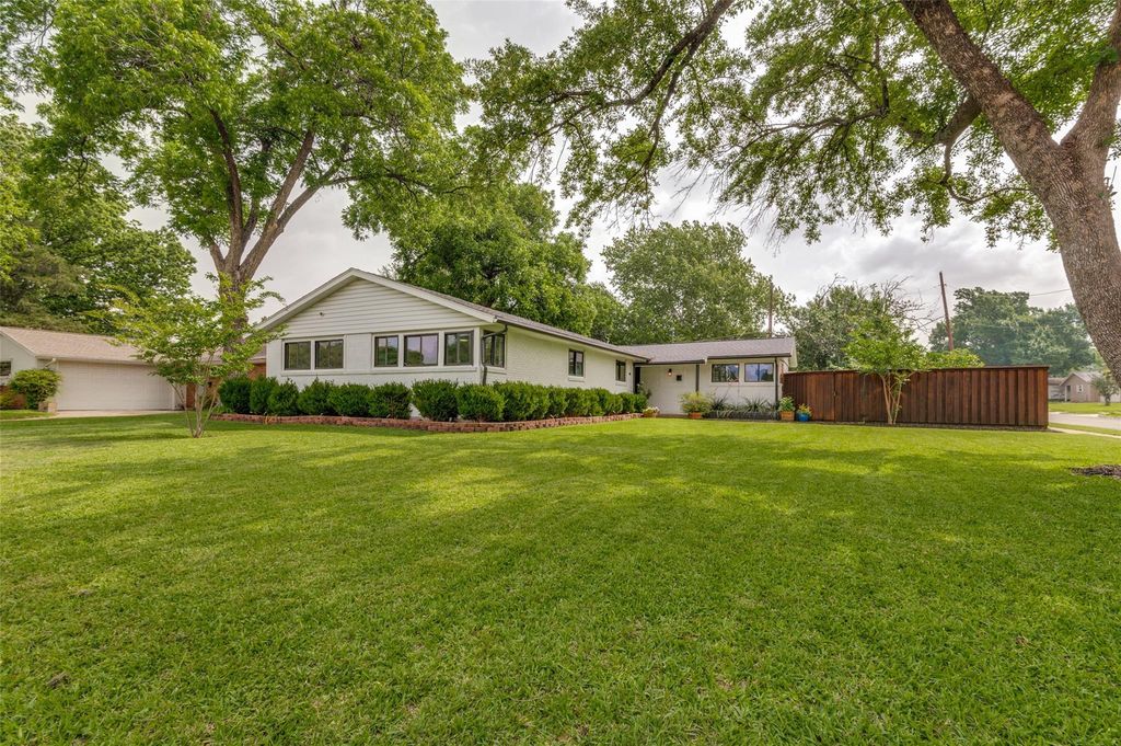 This home is updated, move-in ready and sits on a large corner lot with close proximity to private schools. Updates include new appliances, refinished hardwood floors, fresh paint throughout, and more. The flexible floorplan has 2 primary bedrooms - one with a huge walk-in closet and its own sitting area, nursery or game room. The second primary bedroom is on the opposite side of the house making this a home perfect for roommates, or a multi-generational living situation. The second living area at the front of the house makes the perfect warm and cozy library -- it has tons of natural light, so I could see myself sitting in front of the fireplace all day enjoying a nice book. The kitchen has tons of cabinet and counter space and includes a separate coffee bar. Large yard with privacy fence.