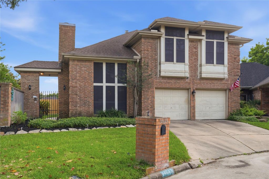 14643 S Hearthstone Green Dr is listed for sale at $ 340,000. The Single-Family property has 3 bedrooms, 2 Full Bathrooms, 1 Half Bathroom, 2758 square feet and was built in 1983. The lot size is 7600 Square feet. ##BR##A Unexpected HIDDEN GEM YOU HAVE TO EXPERIENCE .. True Hearthstone Living. Tucked on a quiet cul-de-sac , this Large 3-bed, 2.5-bath home reveals something truly unexpected. From the street, you’d never imagine what’s behind the privacy gate. Step through the wrought-iron entry and discover a secluded setting that feels worlds away—leading to grand double iron doors and soaring ceilings inside. Completely hidden, framed by a 8-ft fence and anchored by a majestic oak tree, it unfolds as a landscaper’s dream -multiple patio areas, garden zones, outdoor kitchen, or private retreat. Inside offers open living, an island kitchen with multiple dining areas, multiple living areas, and three fireplaces. The primary suite offers soaring ceilings with a double sided fireplace. The upstairs loft can be a game room or office along with three bedrooms. A rare opportunity to own something truly special. Priced to sell.. this gem wont last long.