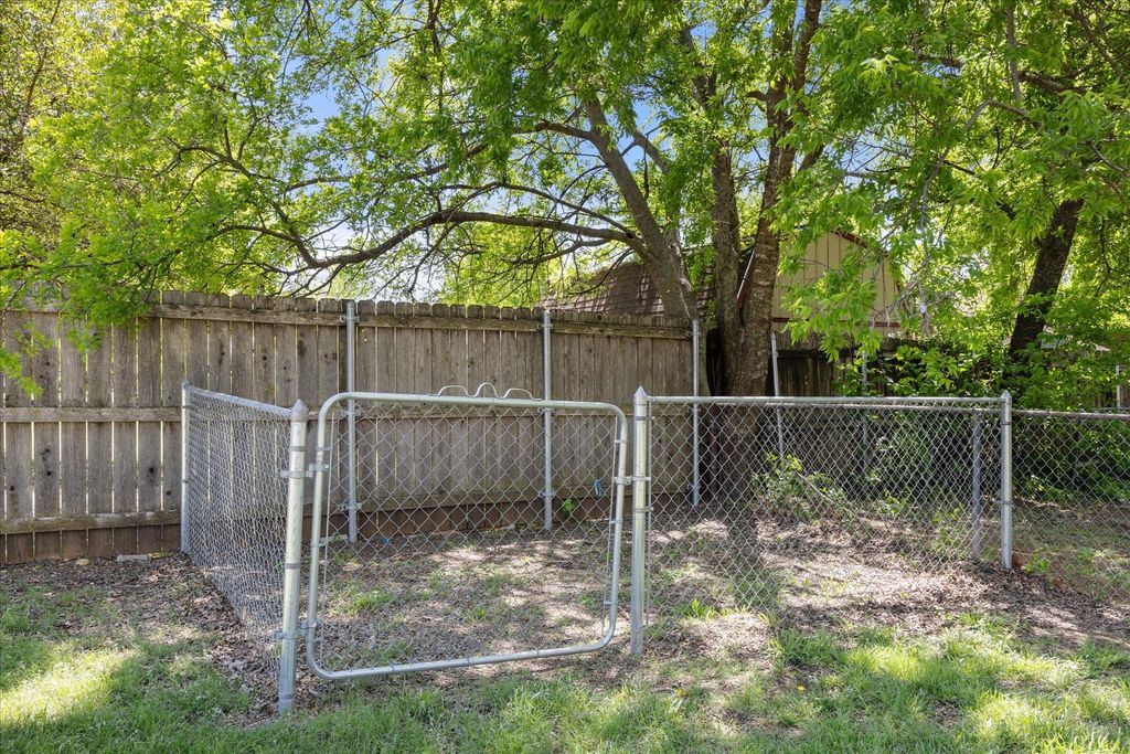Charming single-story brick home featuring a spacious open layout and a large, private backyard with mature trees. The kitchen offers ample cabinet space, updated stainless steel appliances, and a functional island perfect for entertaining or everyday living. The adjoining dining and living areas provide great natural light and a comfortable flow. Enjoy indoor-outdoor living with double doors leading to an expansive backyard, ideal for gatherings, pets, or future customization. The property also includes a unique rustic wood accent cabinet that adds character and warmth. The exterior showcases classic brick construction, a welcoming front entry, and established landscaping. Conveniently located in an established neighborhood with easy access to schools, shopping, and major roadways. This is a great opportunity to own a well-maintained home with space to make it your own!