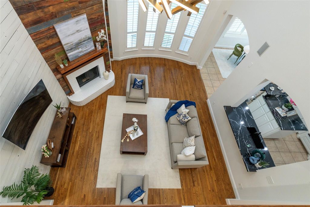 Beautifully maintained home on a premium corner cul-de-sac lot in highly sought-after Lovejoy ISD! This spacious, flexible floorplan features hardwood flooring, a sweeping staircase with iron balusters, decorative moldings, plantation shutters, and $14,000 in upgraded light fixtures, including kitchen enhancements. The open kitchen is perfect for entertaining with quartz countertops, center island, double ovens, and stainless steel appliances. The main level offers a primary suite, secondary bedroom, and a private study with closet that can serve as a third bedroom. Upstairs includes three additional bedrooms, a game room plumbed for a wet bar, and a dedicated media room. Enjoy the extended covered patio overlooking the large backyard. Additional highlights include a 3-car garage, solar screens, central vacuum system, reinforced primary closet with locking door, and ample storage. Backyard storage shed conveys with the property. Community features a pool, parks, and walking trails. Updates include: roof, gutters & screens (2020), roof updates (2025), fence re-stained (2020), upstairs 14 SEER 4-ton condenser & coil (2025), AC updated to code (2025), water heaters replaced, HVAC components updated, and $14K in upgraded lighting. A rare opportunity combining upgrades, functionality, and location in Lovejoy ISD!