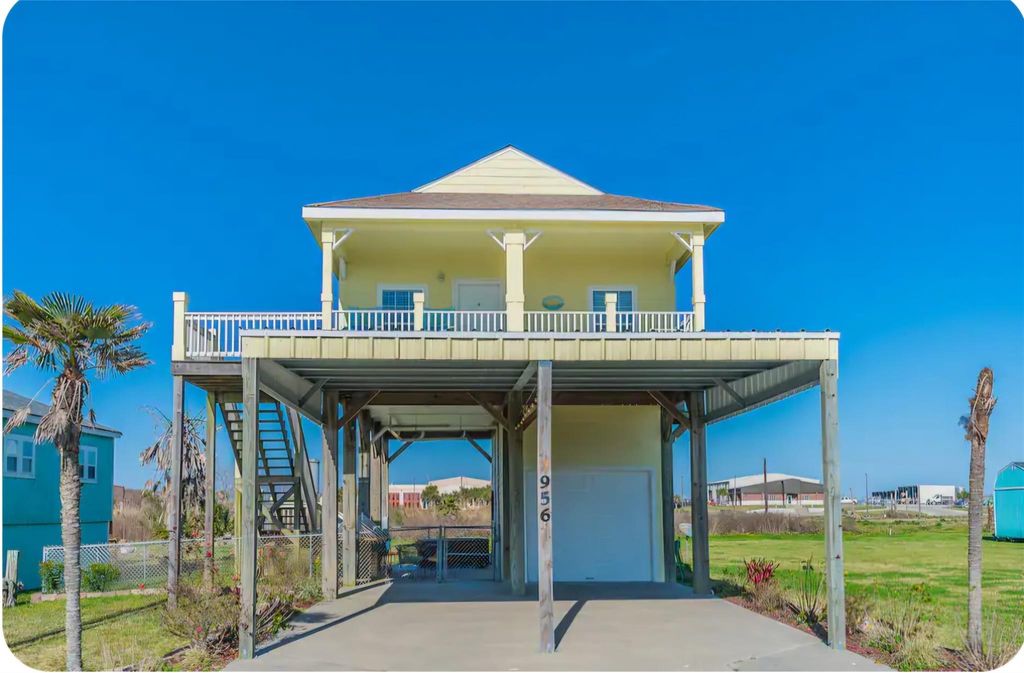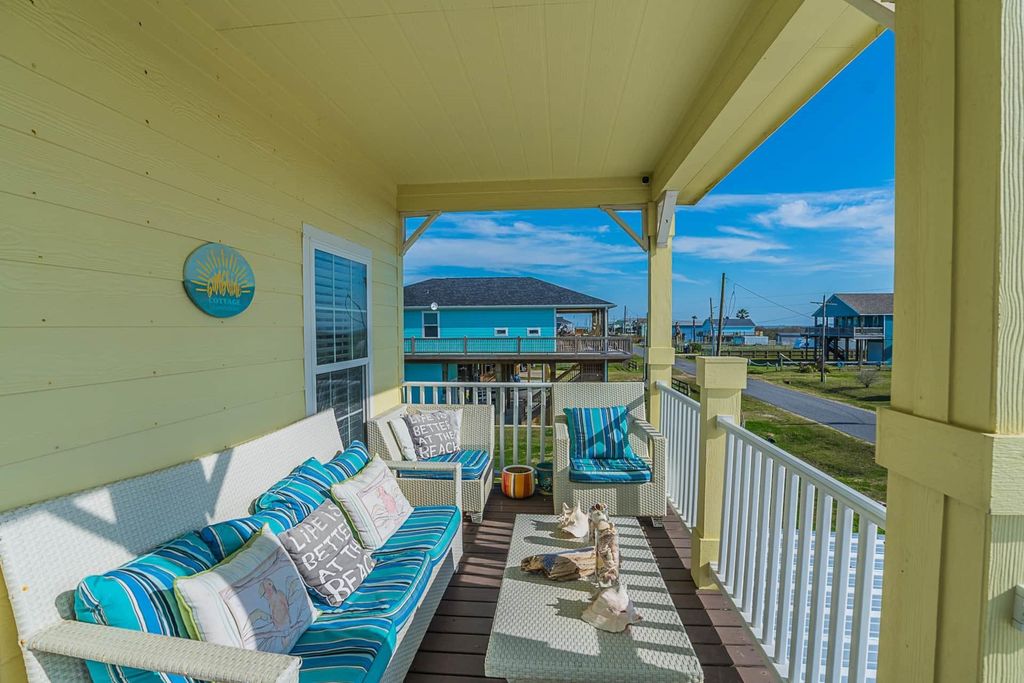 This 2 bed, 1.5 bath beach house has been a successful active vacation rental for over 4 years and is offered fully turnkey with future bookings in place. Enjoy views of the Gulf of Mexico from the covered deck, perfect for relaxing after a day at the beach. Ideal as a starter vacation home, income-producing rental, or full-time residence for those looking to downsize. Situated on a spacious 60x162 ft. partially fenced lot, the property includes a storage shed and a deep garage with loft, perfect for a golf cart or boat. A two-car covered carport with tandem parking provides plenty of space for guests. Located just a short distance to the beach with easy access by golf cart or car, this property is ready to enjoy or rent immediately. Recent HVAC and stairs. Home is being sold AS-IS fully furnined