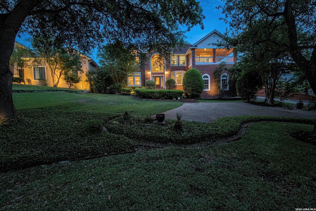Beautifully updated 3,607 sq ft home sits on a private, tree-filled lot with a long, scenic driveway, like being in your own park-like paradise. Inside, you'll find soaring ceilings, hardwood floors, and a grand staircase entry, plus multiple living and dining areas ideal for entertaining. The fully renovated kitchen features quartz countertops, custom cabinetry, stainless steel appliances, farmhouse sink, a pot filler and a large island, all opening to the main living space. The spacious primary suite offers vaulted ceilings, a dual sided fireplace, and a spa-like bath with soaking tub, walk-in shower, and generous closet space. Additional bedrooms and flex spaces are perfect for a home office, gym, or guest rooms. For those streamers or working from home Google Fiber is available. Step outside to a resort-style backyard with pool and spa, mature trees, covered patio, and upper balcony-perfect for relaxing or entertaining year-round. Enjoy 24-hour guarded access, establis
