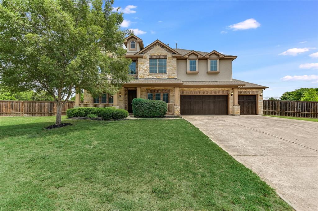 Welcome to life in The Bridges at Bear Creek, where hill country scenery meets the convenience of being just 15 miles from downtown Austin! Situated on an oversized 1.196-acre lot, this spacious 5-bedroom, 3.5-bath home offers approximately 3,700 square feet of comfortable living designed for both everyday life and entertaining. Inside, the home opens to a bright and inviting layout filled with natural light. Tile flooring spans the main living areas, while plush carpet upstairs adds warmth to the private spaces. At the center of the home, the generous family room with a cozy fireplace creates the perfect setting for movie nights, game days, or relaxed weekends at home. The kitchen is designed to keep everyone connected, featuring abundant cabinetry, a large center island with breakfast bar that flows seamlessly into the formal dining and main living spaces. Whether preparing weeknight meals or hosting holiday gatherings, the layout offers both functionality and space! A dedicated office provides a quiet space for working from home or managing daily tasks. Upstairs, the expansive landing and adjoining loft create a versatile area that easily adapts as a playroom, media room, or additional game space. Privately located on the main level, the primary suite offers a peaceful place to unwind with a walk-in closet, dual vanities, soaking tub, and separate shower. Outside, the backyard delivers the kind of space that’s hard to find! With no rear neighbors and over an acre to enjoy, there’s room for everything from backyard games to weekend gatherings. The covered patio offers a comfortable place to relax while enjoying the wide-open surroundings. With a three-car garage and generous storage throughout, this home offers both space and practicality. Located in a welcoming community surrounded by the natural beauty of the hill country, residents enjoy the balance of quiet neighborhood living with convenient access to nearby schools, shopping, and Austin’s vibrant city
