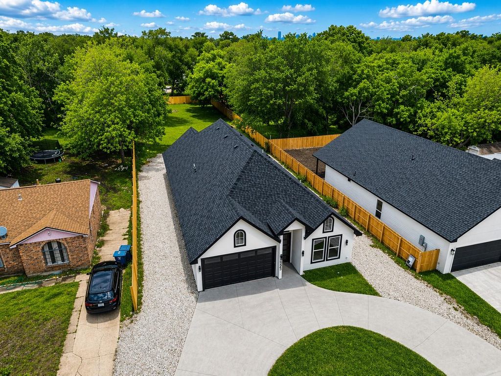 Stunning, Brand-New Modern Home! Move-in ready and conveniently located near Downtown Dallas and the Bishop Arts District, with easy access to top dining, shopping, and entertainment. This home features 4 bedrooms and 3 full baths, offering a functional and flexible layout. The open-concept design includes tall ceilings and large windows that provide abundant natural light. The modern kitchen is equipped with stainless steel appliances, including a stove, dishwasher, and microwave, and flows seamlessly into the living and dining areas, ideal for everyday living and entertaining. The primary suite includes a spacious bedroom, en-suite bath with double sinks, and a walk-in closet. Two additional full baths provide added convenience for guests or household members. Enjoy a covered back porch and a generously sized backyard. Situated on almost half an acre, this property offers plenty of outdoor space and flexibility. Rear-entry access through the back alley adds convenience and enhances curb appeal. No HOA and no income restrictions. 10-year structural warranty included. Schedule your showing today.