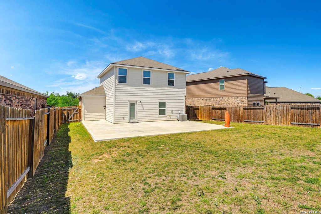 Welcome to this beautifully well maintained 2 story home. Designed for 3-bedroom, 2.5 bathrooms. This house perfectly blends comfort, space, and privacy. Situated in a desirable location, this property offers a rare setting with a small greenbelt directly across the front yard with no homes and added privacy you'll appreciate every day. Step outside to an expansive backyard that truly sets this home apart. Featuring a massive 1,200 square foot patio slab, it's the perfect space for entertaining, outdoor dining, or creating your dream backyard oasis with mature trees, grass and landscaping plenty of room to relax, play, or host gatherings. Inside, the home offers a functional and inviting layout with granite countertops and large kitchen. This home delivers the perfect combination of outdoor space, privacy, and location. Conveniently located with quick access to Culebra and Shaenfield, and just minutes from Loop 1604, you'll enjoy easy commuting along with nearby shopping, dining, and e