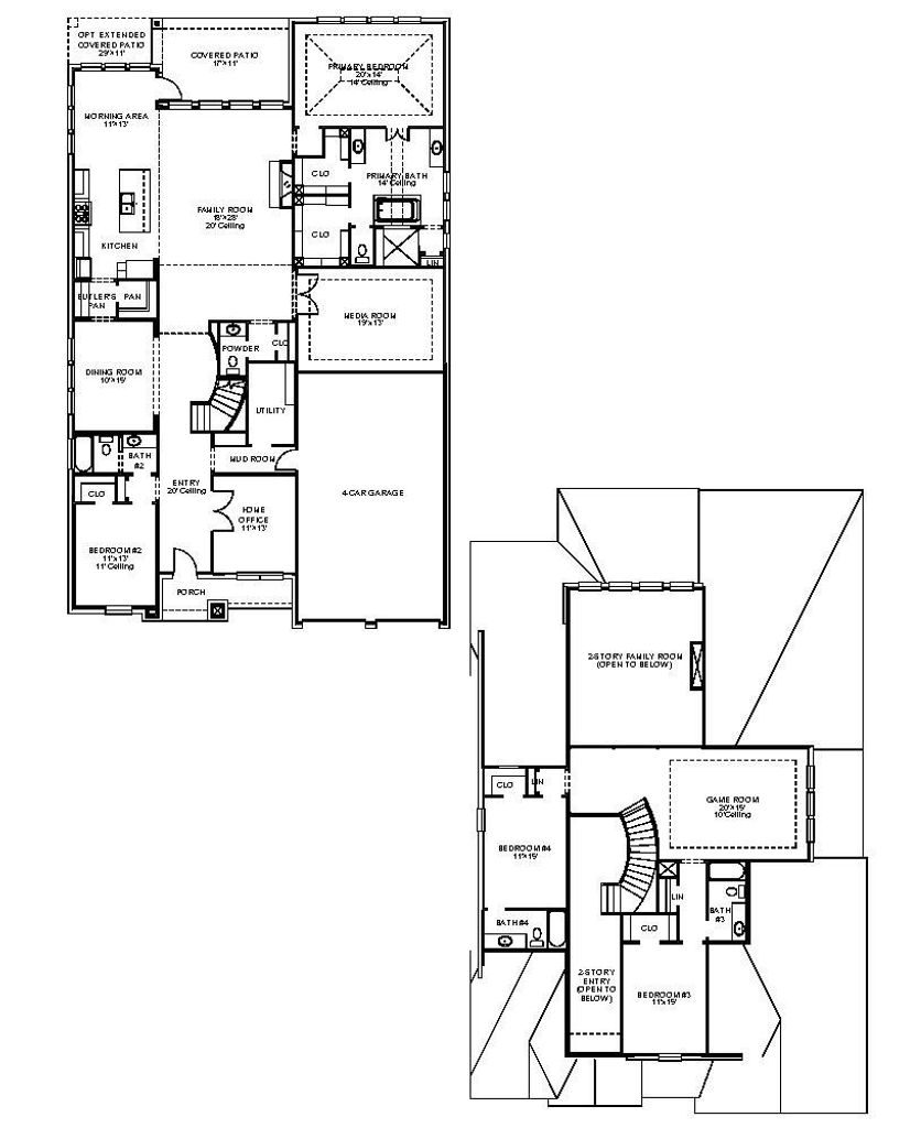 Front porch opens to two-story entry. Formal dining room and home office with French doors off the entry way. Kitchen features an island with built-in seating space, a 6-burner gas range top, and a walk-in pantry. Morning area just off the kitchen with walls of windows. Open family room with a wood mantel fireplace, hardwood floors throughout main living area, and sliding glass doors. Secluded primary bedroom with a wall windows. Double doors lead to primary bath with dual vanities, a freestanding tub, a separate glass enclosed shower and an oversized walk-in closet. Second level features a game room and secondary bedrooms. Extended covered backyard patio. Mud room and utility room off of four-car garage.
