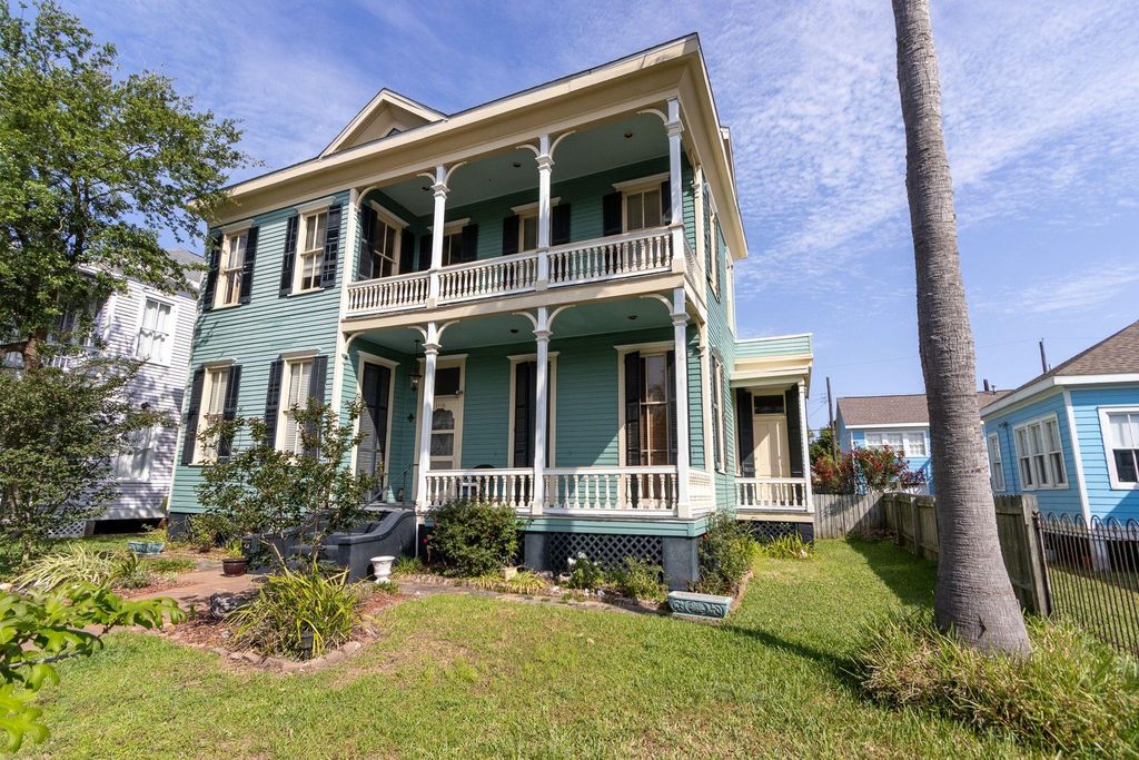 Circa 1883, two story Victorian on 1 1/2 lots in the heart of the East End across from Sidney Sherman Park. This historical gem has 5 bedrooms, 3 baths, 5 fireplaces, massive pocket doors, 8 floor-to-ceiling windows and a butler's pantry. There are double gallery front porches and back porch/deck and even a porch off the formal dining room. There is a separate freestanding one story climate-controlled backyard building 18x17. There is a first floor bedroom with ensuite bath and large closet 10x7. There is another full bath downstairs in the kitchen/breakfast area. In addition to the downstairs utility room there is an additional 14x10 storage room. Kitchen is fully equipped and has granite countertops, breakfast bar and a large pantry connecting the kitchen to the formal dining room. A five piece Eastlake parlor set is included in the sale and stays with the property.