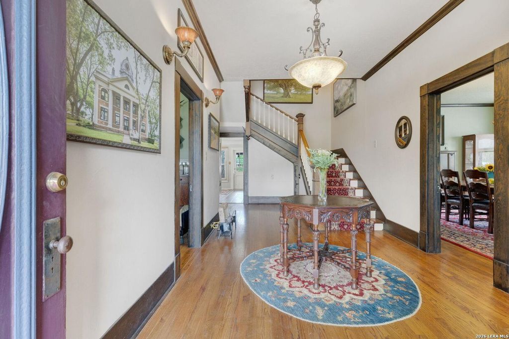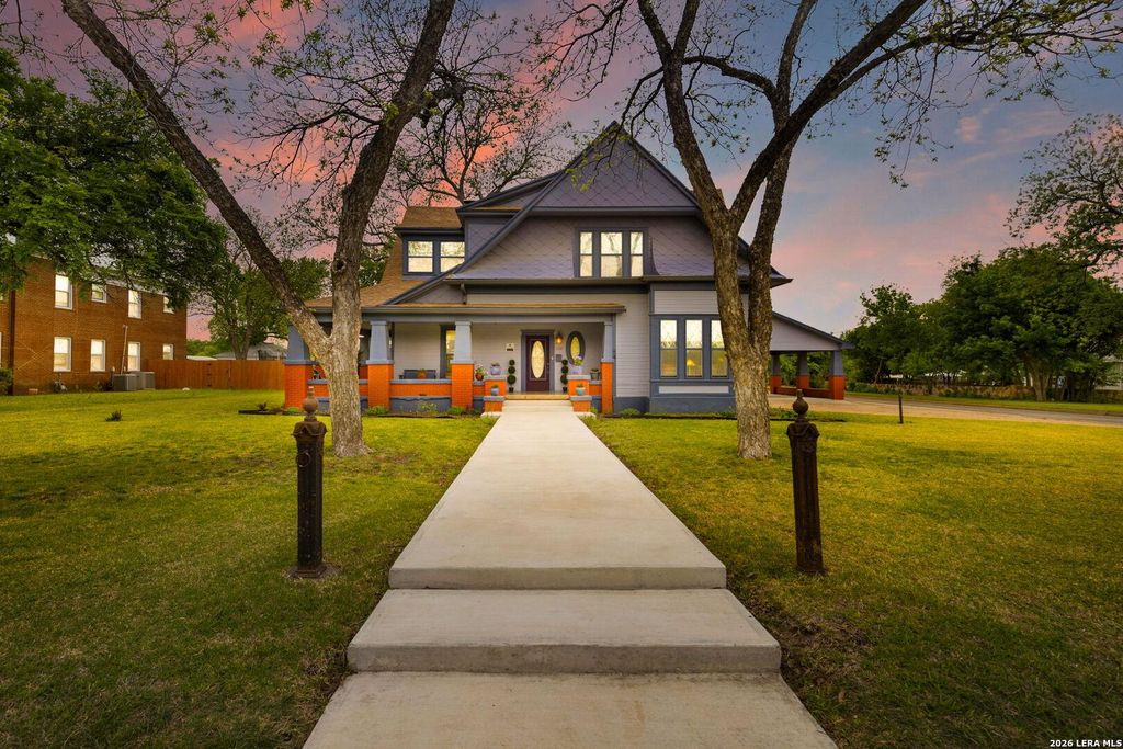 Step into timeless elegance in this architecturally significant 1909 Plains Victorian, beautifully blending historic charm with modern comfort. Set on nearly half an acre, this meticulously restored four-bedroom, four-bath home is truly move-in ready. The home's commanding exterior and classic lines evoke a bygone era. Inside, a grand foyer opens to a welcoming parlor and formal dining room, connected by original longleaf pine pocket doors-ideal for entertaining. Oversized rooms feature soaring 12-foot ceilings and original longleaf pine and quartersawn oak woodwork, including crown molding and 10-inch baseboards. The spacious kitchen offers granite countertops, motion-sensor lighting, and premium appliances, including a Bosch dishwasher, hammered copper farm sink, GE gas range, and French door refrigerator. Upstairs, three large bedrooms each include en suite baths with period-appropriate finishes. A fourth en suite bedroom downstairs, with private exterior access, is perfect