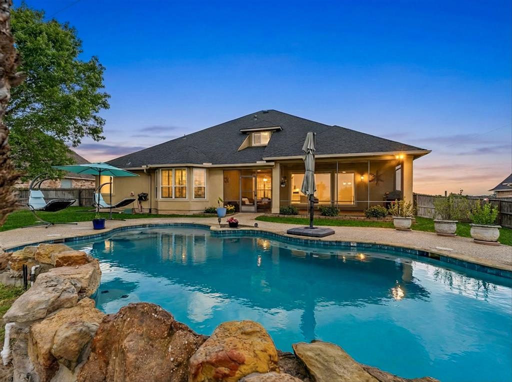 Welcome to your private retreat in the exclusive, gated Harbor Side community of West Lake Conroe in Montgomery, TX. This stunning Texas Mediterranean-style stucco ranch home sits on a beautifully landscaped and timbered one-acre lot, offering the perfect blend of elegance, comfort, and resort-style living. Spanning approximately 3,200 square feet, this thoughtfully designed 4-bedroom, 4-bath home with a large upstairs flex area features a spacious open-concept floor plan ideal for both everyday living and entertaining. The home features archways, crown molding, rich stained concrete floors and classic shutters that add warmth and character throughout, while expansive living areas provide seamless flow and abundant natural light allowing for attractive focal points to fireplace and pool side views. The oversized kitchen is a true centerpiece, complete with generous counter space, ample cabinetry, and an open layout that connects effortlessly to the main living and dining areas—perfect for hosting family and friends. Step outside to your own backyard oasis. A screened-in porch invites year-round relaxation, overlooking a custom-designed pool surrounded by lush landscaping and wide-open space. Whether enjoying quiet mornings or lively gatherings, the one-acre homesite with a 3 car garage offers privacy and room to breathe. Recent improvements include two HVAC units (2024), roof replaced (2022), berber carpet (2026), and concrete floor refinish (2026). Located within a sought-after gated community near West Lake Conroe, this home combines expansive serene living with convenient access to dining, recreation, POA amenities, lake access, fishing pier, highly acclaimed schools, and all that the area has to offer! Information provided is deemed approximate, but not guaranteed and should be independently verified. Buyer or Buyer's Agent to verify measurements, schools, taxes, HOA, utilities, zoning, home history, etc.