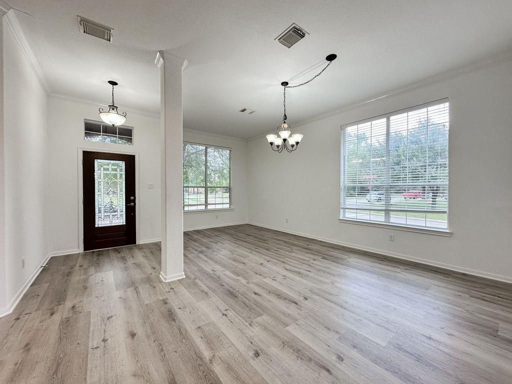 GREAT FLOORPLAN, 1 STORY 4 BEDROOMS VILLAGE BUILDERS MAYFAIR PLAN ON CORNER LOT. FEATURES MAHOGANY FRONT DOOR WITH LEADED GLASS INSERT, UPGRADED LUXURY VINYL ALL THROUGHOUT. GORGEOUS OPEN ISLAND KITCHEN, UNDER MOUNT SINK, 42' KITCHEN CABINETS, STAINLESS STEEL APPLIANCES, FIREPLACE W/CERAMIC TILE, CEILING FANS IN ALL AREAS, MASTER BATH W/DOUBLE SINKS, SEPARATE SHOWER & WHIRLPOOL TUB, SECURITY SYSTEM, FULLY SPRINKLED. FRIDGE, WASHER & DRYER INCLUDED.