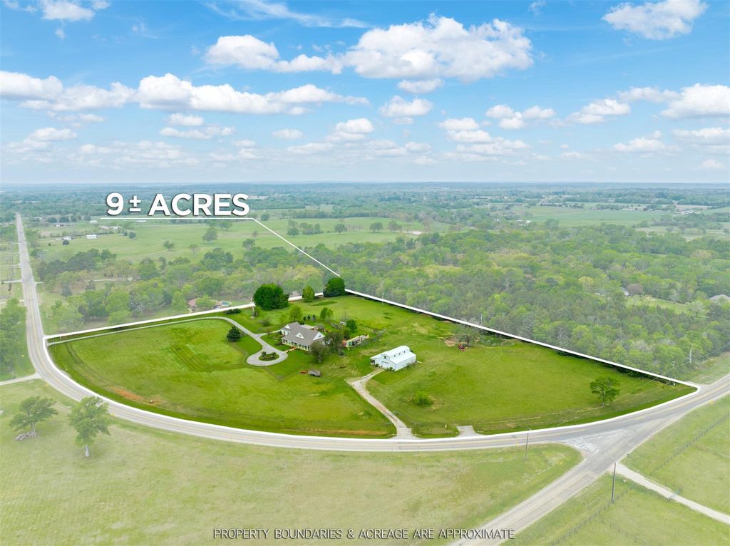 Experience timeless elegance and East Texas charm on 9.301 acres just minutes from Tyler. A scenic drive leads to this Southern-style estate with a circular drive and inviting front porch. The 3,417 sq. ft. home features 3 bedrooms, 3 baths, multiple living and dining areas, and an upstairs bonus room. Wood floors and abundant windows fill the home with natural light. Enjoy lush landscaping, a pool, and outdoor fireplace. A 3,600 sq. ft. barndominium includes 1,800 sq. ft. guest quarters with open living, kitchen, and dining space, plus 2 bedrooms and 1 bath, along with 1,800 sq. ft. barn/garage space. Surrounded by pastures and fruit trees and located in Bullard ISD, this property offers a perfect blend of luxury, comfort, and country living.