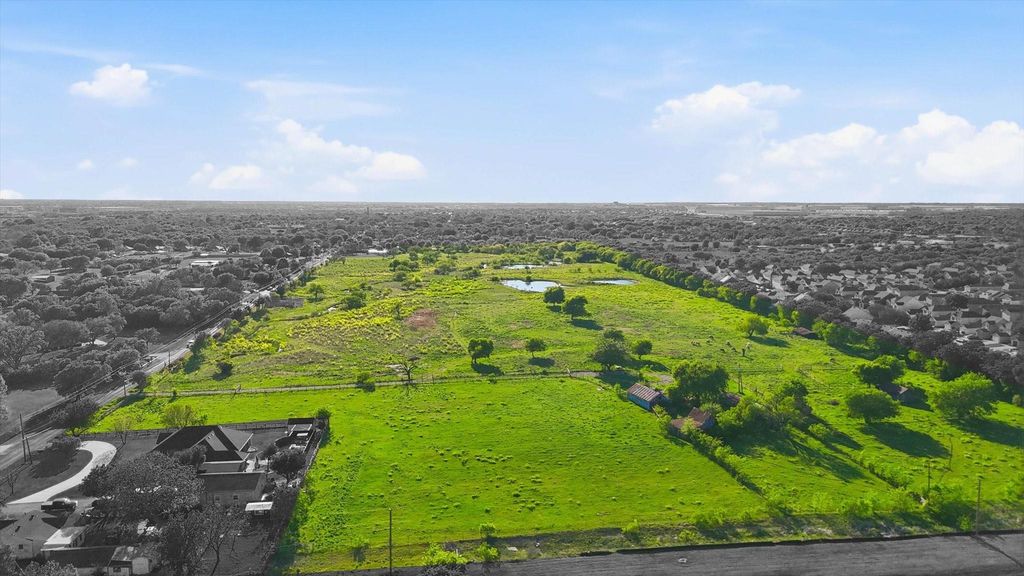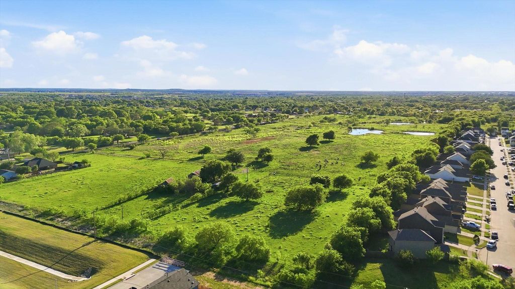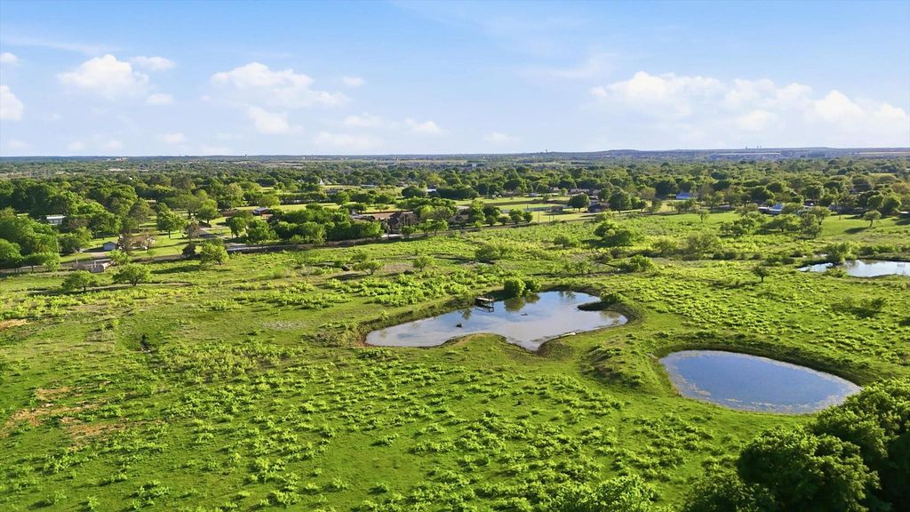 This 39.388-acre tract offers a rare opportunity for buyers seeking usable acreage in DFW with development potential. Zoned A-5 residential, the property is well-suited for a custom home, private ranch, family compound, or future residential development (subject to local approvals). Utilities are available at the property line, providing a significant advantage for those looking to build or develop efficiently. The land features gently rolling terrain, offering multiple attractive build sites with natural elevation and drainage. Unlike many raw land offerings, this property is already improved with cross fencing (on the east side), two rustic barns, and a loafing shed, making it immediately functional for livestock, recreation, or interim use while plans are finalized. Three scenic ponds and a seasonal creek bed enhance both the aesthetic appeal and usability of the land—an increasingly rare feature that adds long-term value for both end users and investors. Property includes 1601 and 1611 Oak Grove Rd E (2 addresses, 3 parcels)