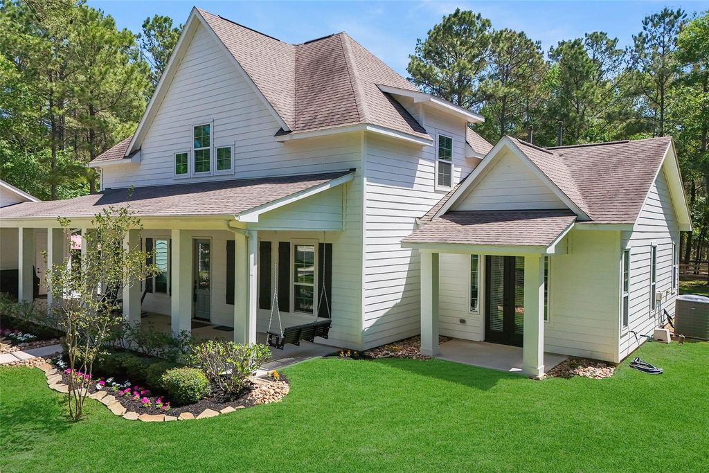 Updated and move-in ready on 1.5 acres with mature trees and improved curb appeal—an ideal alternative to new construction. The open-concept family room, kitchen, and dining area provide seamless flow for everyday living and entertaining.The primary suite offers a private retreat with French doors leading to a covered porch—perfect for morning coffee or relaxing evenings.Upstairs features a Jack-and-Jill layout with separate vanities for each bedroom and a shared tub/toilet area, plus generous closet space and a climate-controlled bonus room ideal for a game room, office, or flex space. Recent exterior improvements, mature landscaping, and the 1.5-acre lot set this property apart from nearby new construction.Neighborhood amenities include 3 stocked lakes, picnic and playground areas, covered pavilion, community pool, and equestrian facilities with horse trails and an arena.