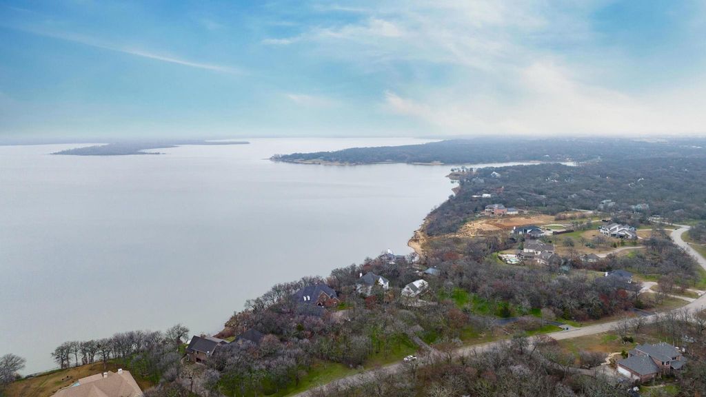 Welcome to this stunning Lake Lewisville Lakefront Estate, where sweeping water views add to this unique property. Main house is recently updated with new flooring and fixtures, plus bathroom & kitchen updates. Invite guests into grand living area, accented by dramatic staircase, stone fireplace, and incredible water views looking out to the horizon. Stately study is accented by sleek hardwoods, new carpet, and boasts impressive rounded windows, generous built-ins and secret door to storm shelter! Dining room glows under shimmering chandelier, making an elegant space for entertaining. Unique hardwood ceiling accents gourmet kitchen and provides ample countertop and built-in storage space. Luxury touches, including built-in industrial fridge, island, prep sink, and Viking hood make cooking a delight. Connected breakfast nook continues the thoughtful hardwood detailing and provides close patio access and generous views of expansive lake. Oversized primary is a retreat, with rounded bay windows looking out to the lake with ample space for peaceful sitting area. Spa-like primary bath includes dual vanities, separate garden tub and shower, and 2 WIC that provide plenty of custom built-in storage. Additional downstairs bedroom is perfect guest suite, with ensuite bath and WIC. Downstairs bright sunroom features built-ins, making it ideal for craft room or additional office space. Upstairs offers roomy game room with bay windows and convenient wet bar for entertaining. Additional bedrooms include jack & jill bath and WIC. 2nd floor of garage includes additional apartment space, with kitchen, full bath, living area, and bedroom. Outdoor oasis features generous multi-level patio space, perfect for outdoor seating or dining. Backyard leads down to the water with stone pathways and includes private woods for quiet seclusion. Additional features include oversized garage, 3 water heaters, 5 heat pumps, geothermal system for HVAC, and propane generator!